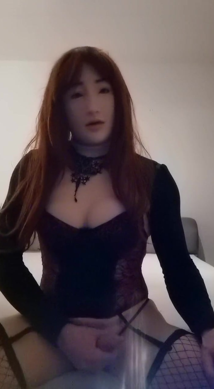 Chick Mask Crossdresser in underwear has lots of joy draining