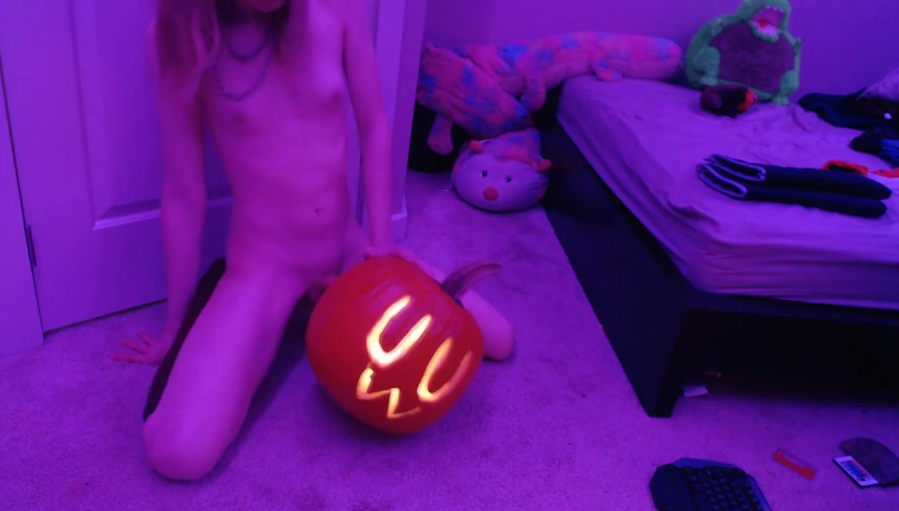 Ultra-Cute first-timer trans chick creampies Halloween pumpkin