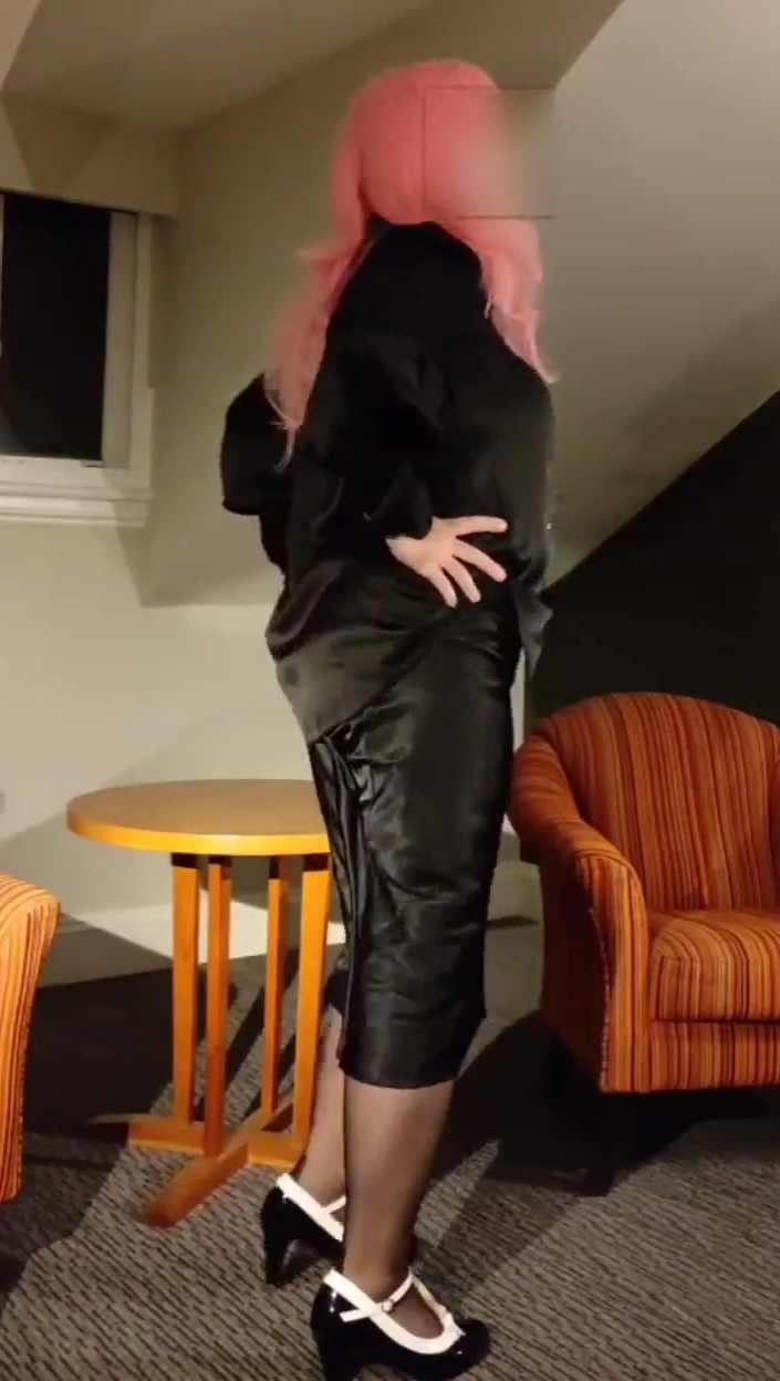 Hot tv sissy crossdresser Nottstvslut office slut in full satin.