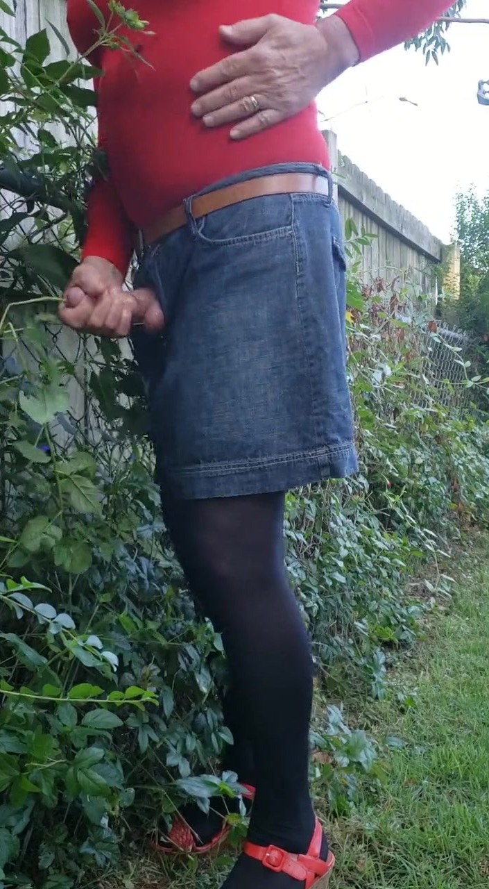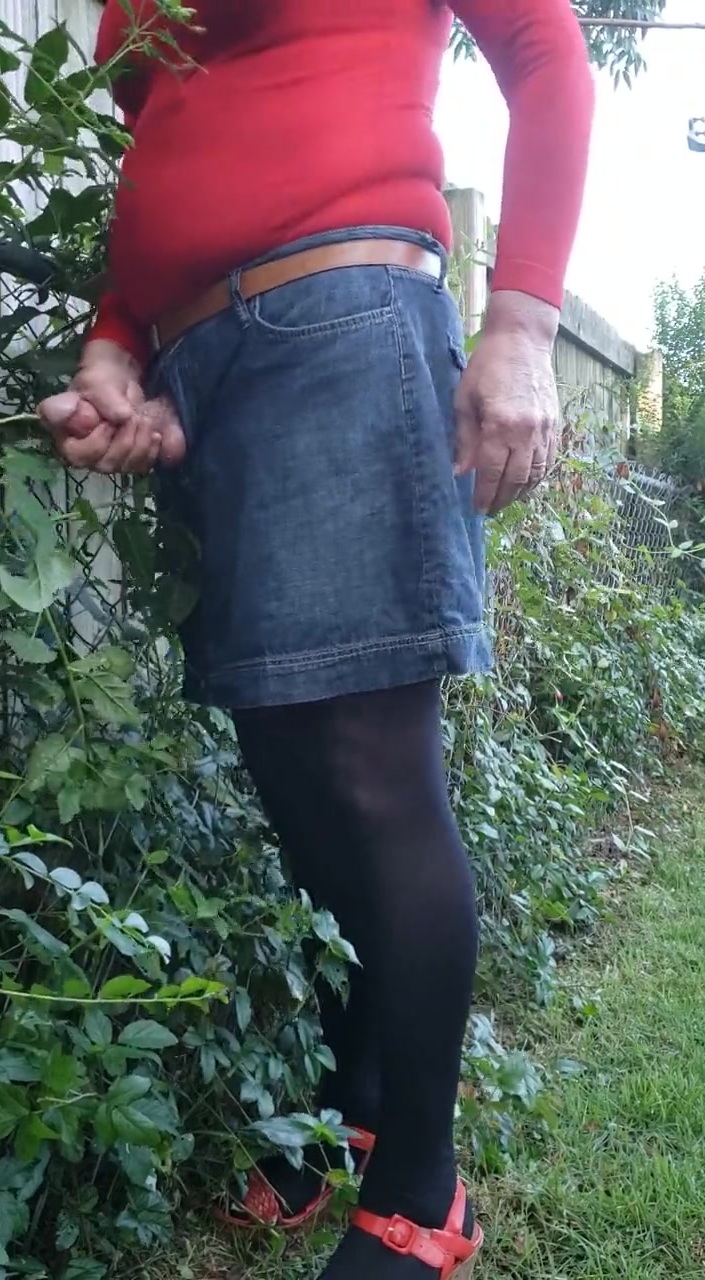I'm outside in my sexy crossdress outfit. It's a beautiful day and the plants look so inviting. I have to use one of the plants to slowly slide in my cock. Urethral sounding my cock. It feels so good. I have to masturbate and come all over my denim mini skirt.
