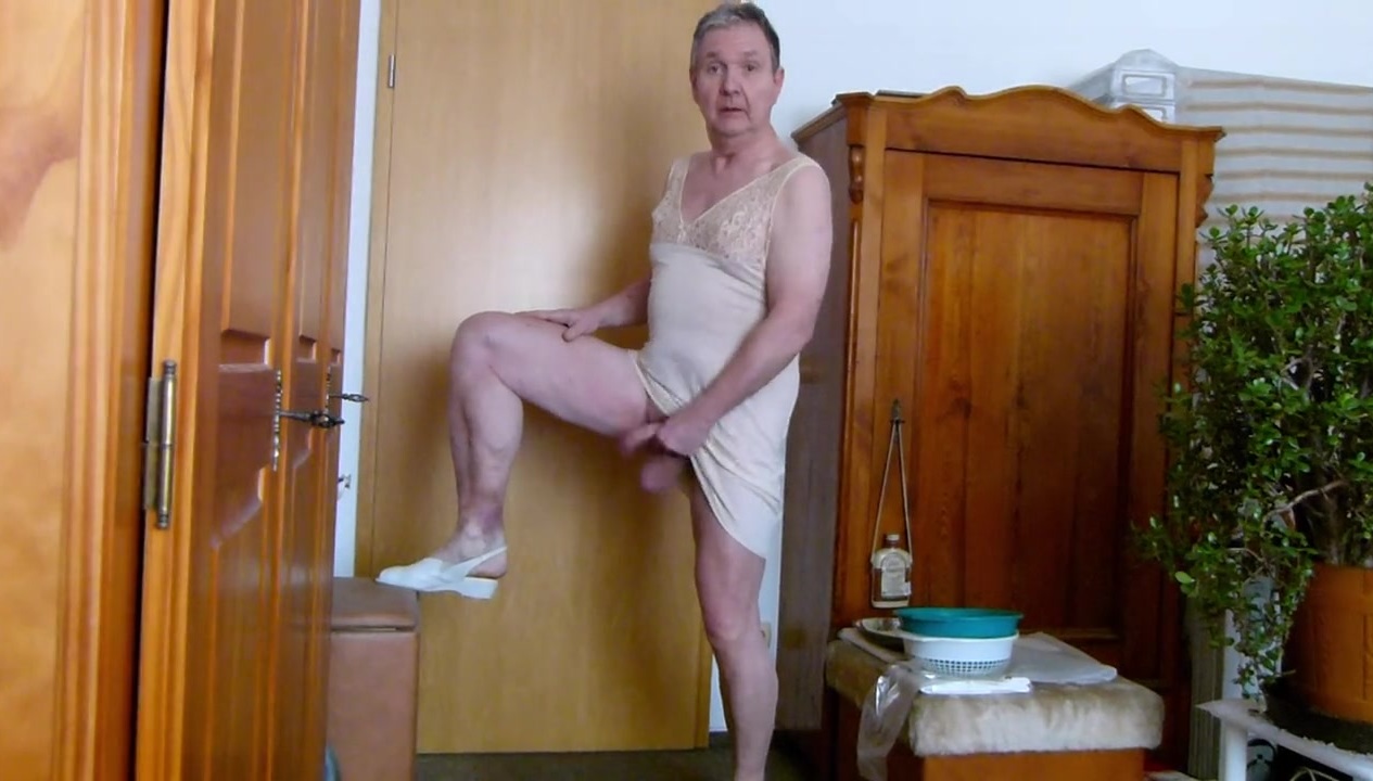 Andi geil wichst in den Unterkleidern von seiner Mutter