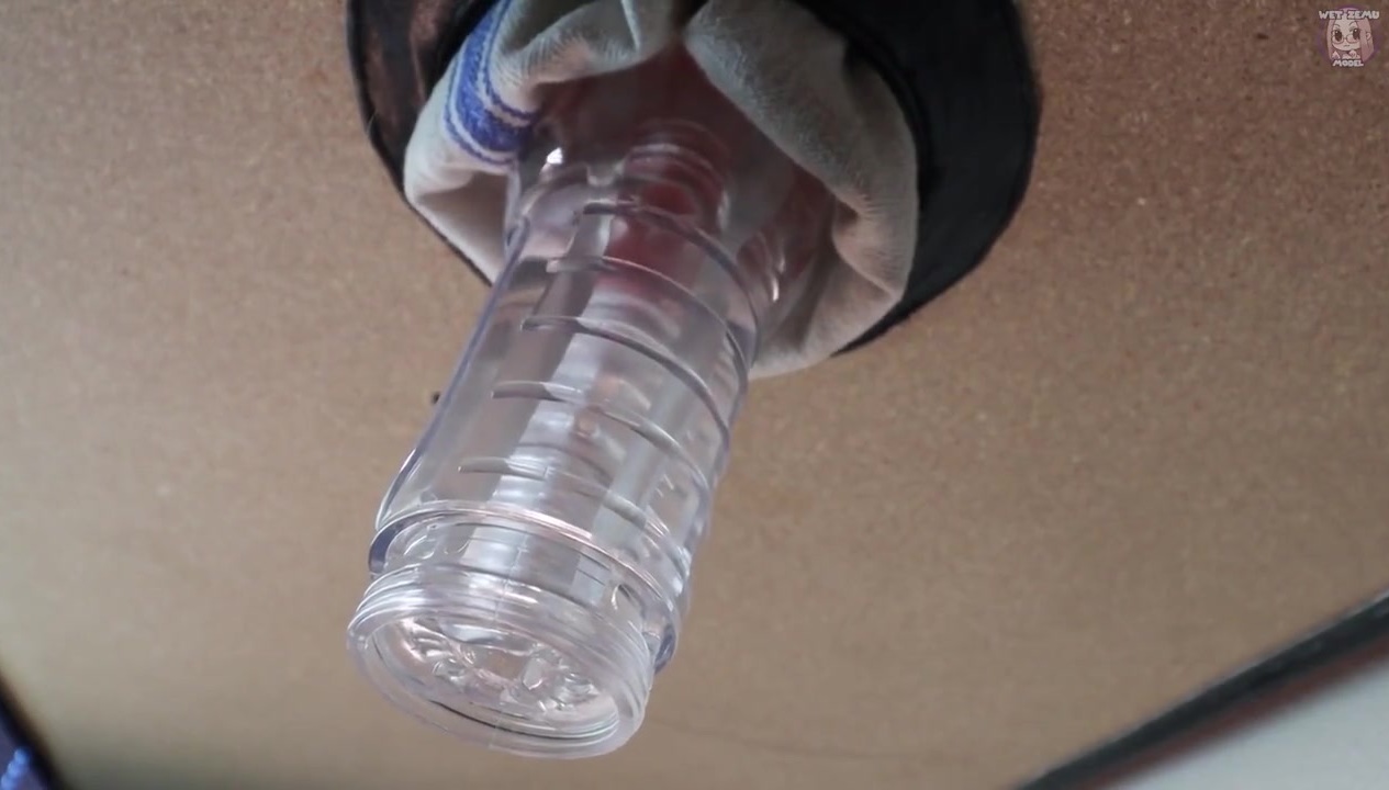 Through some "creative engineering", I got my new crystal Fleshlight in my milking table, and fucked it hands free. It milks a cumshot out of me so, so fast. I'd been edging for 10 hours, and from the moment I got hard I was about to explode! Watch the size of the cum fountain I make, eventually humping so hard that the Fleshlight falls through, and you can see my twitching girl cock dripping cum still.