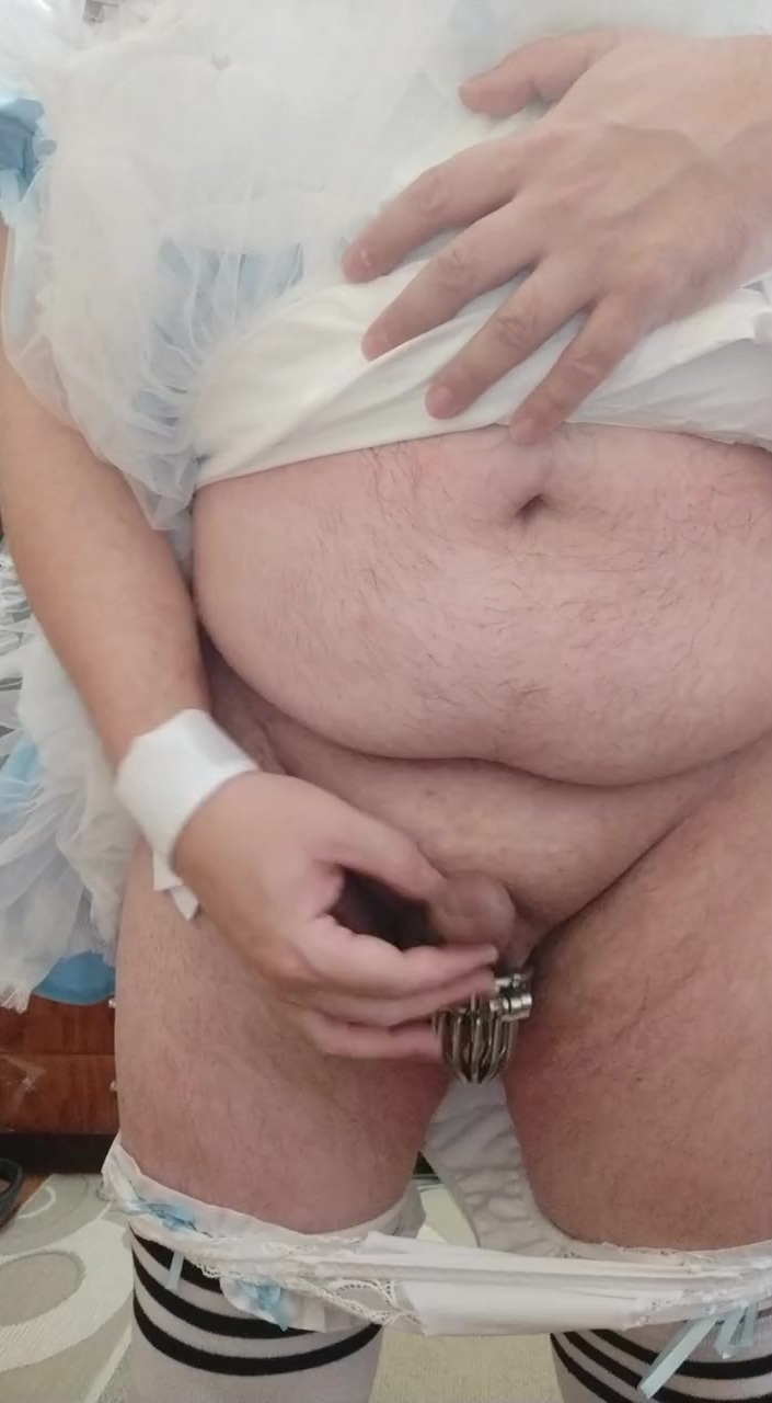 Sissy maid after cleaning determined to have fun with her smallish man sausage