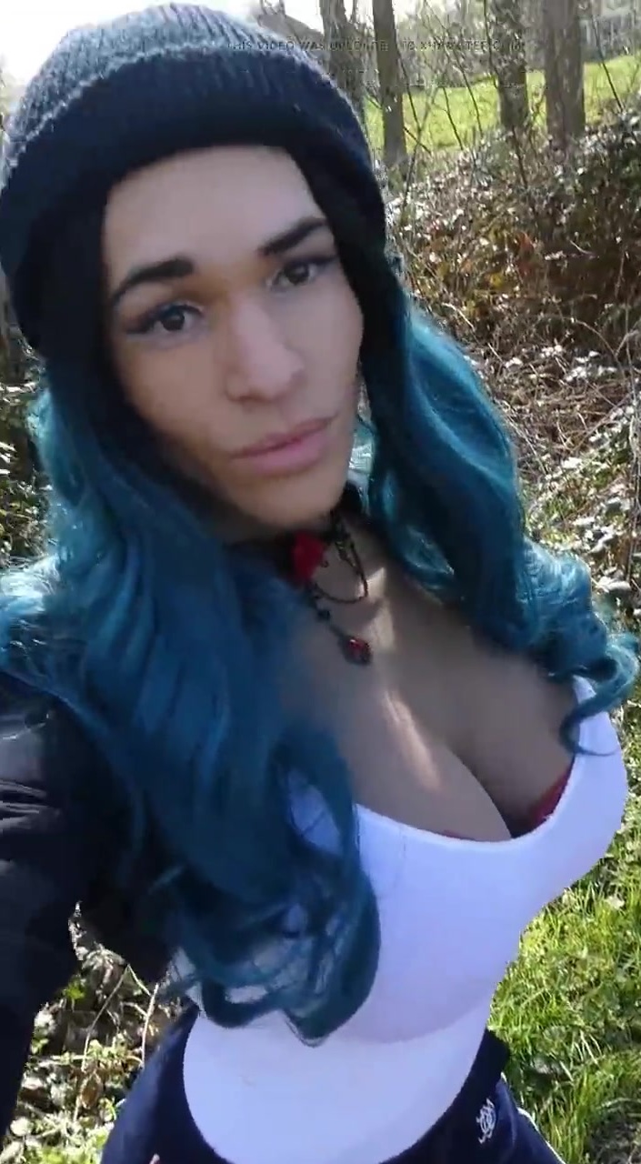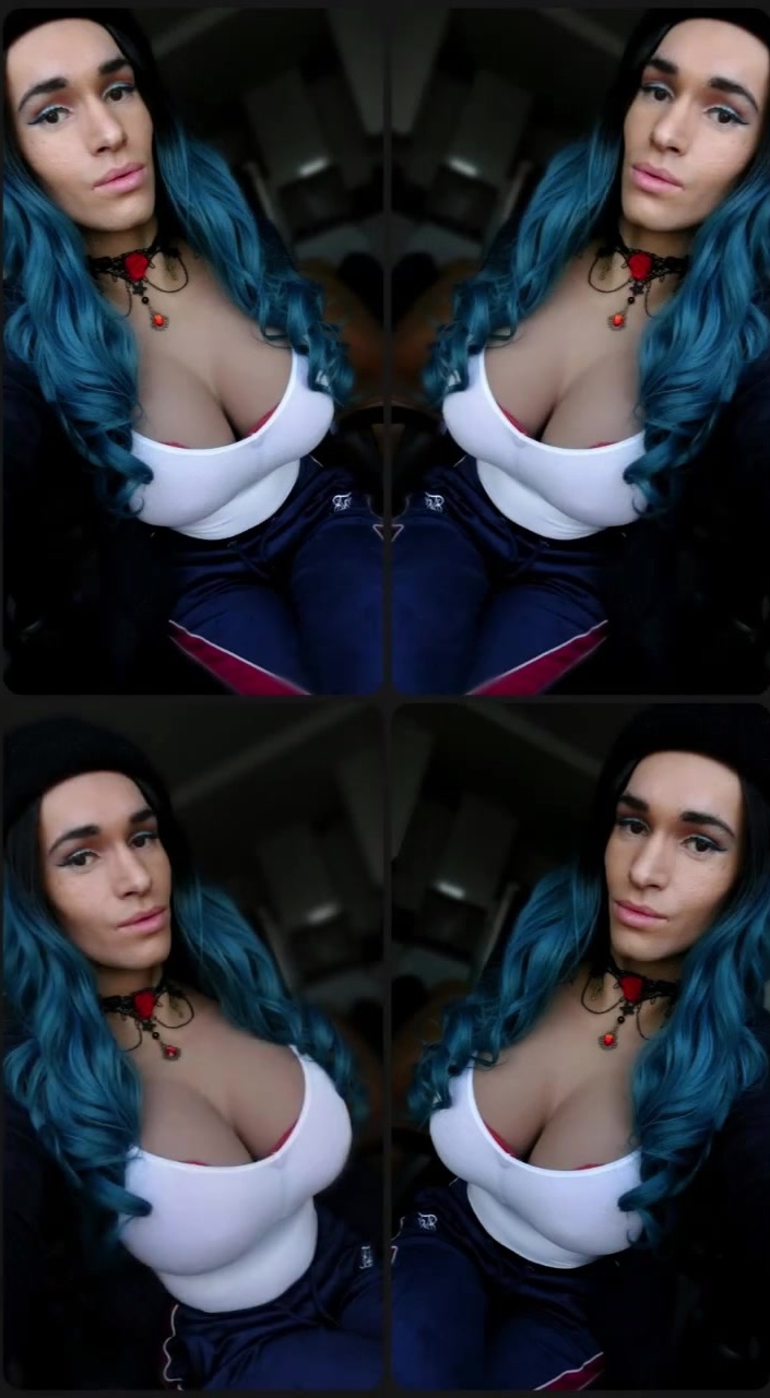 Crossdresser Alaina Sanchez Public Walk Blue Peruke