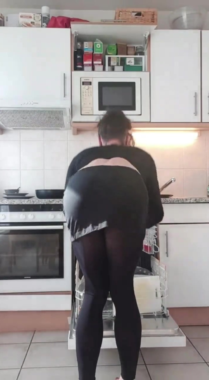 Crossdresser showing ass and cock at home in skirt and tights and crop top