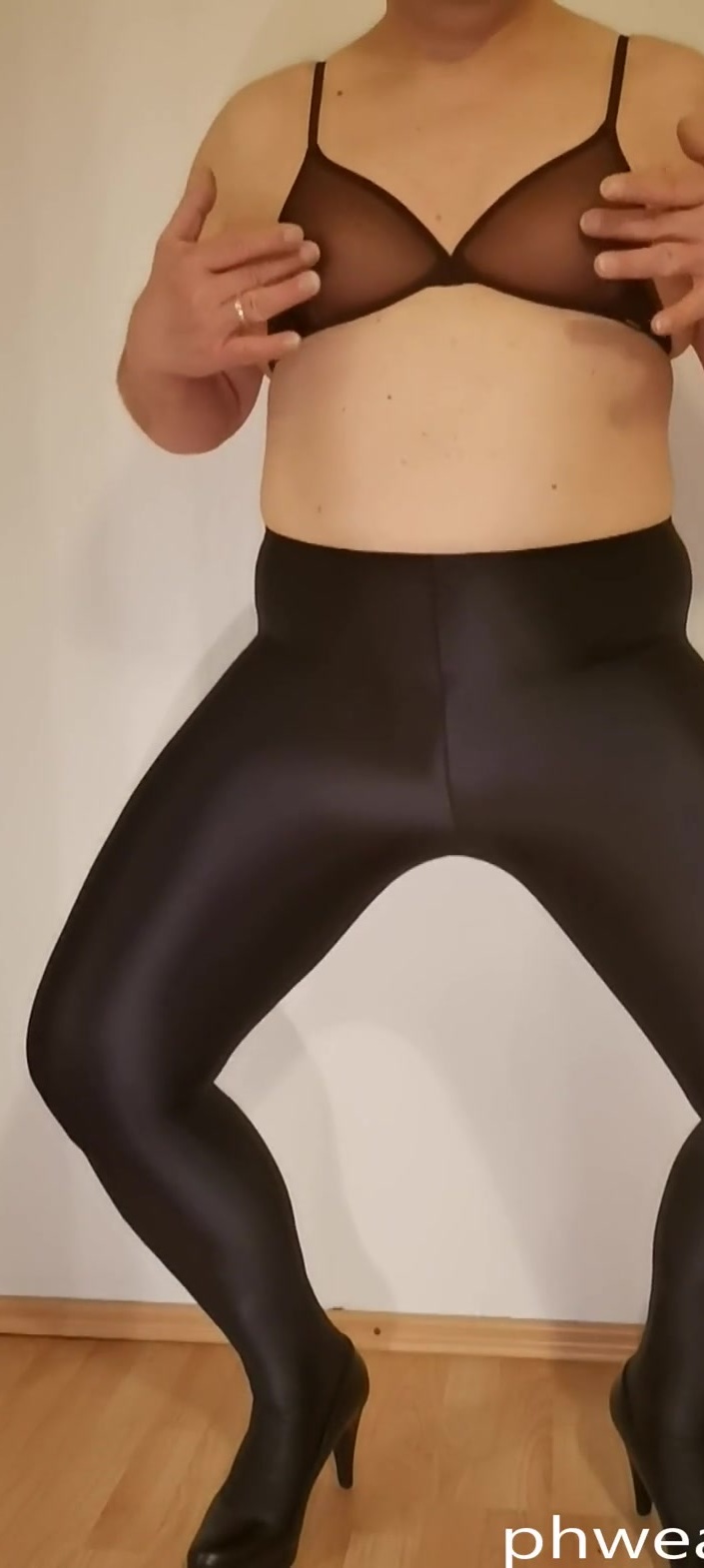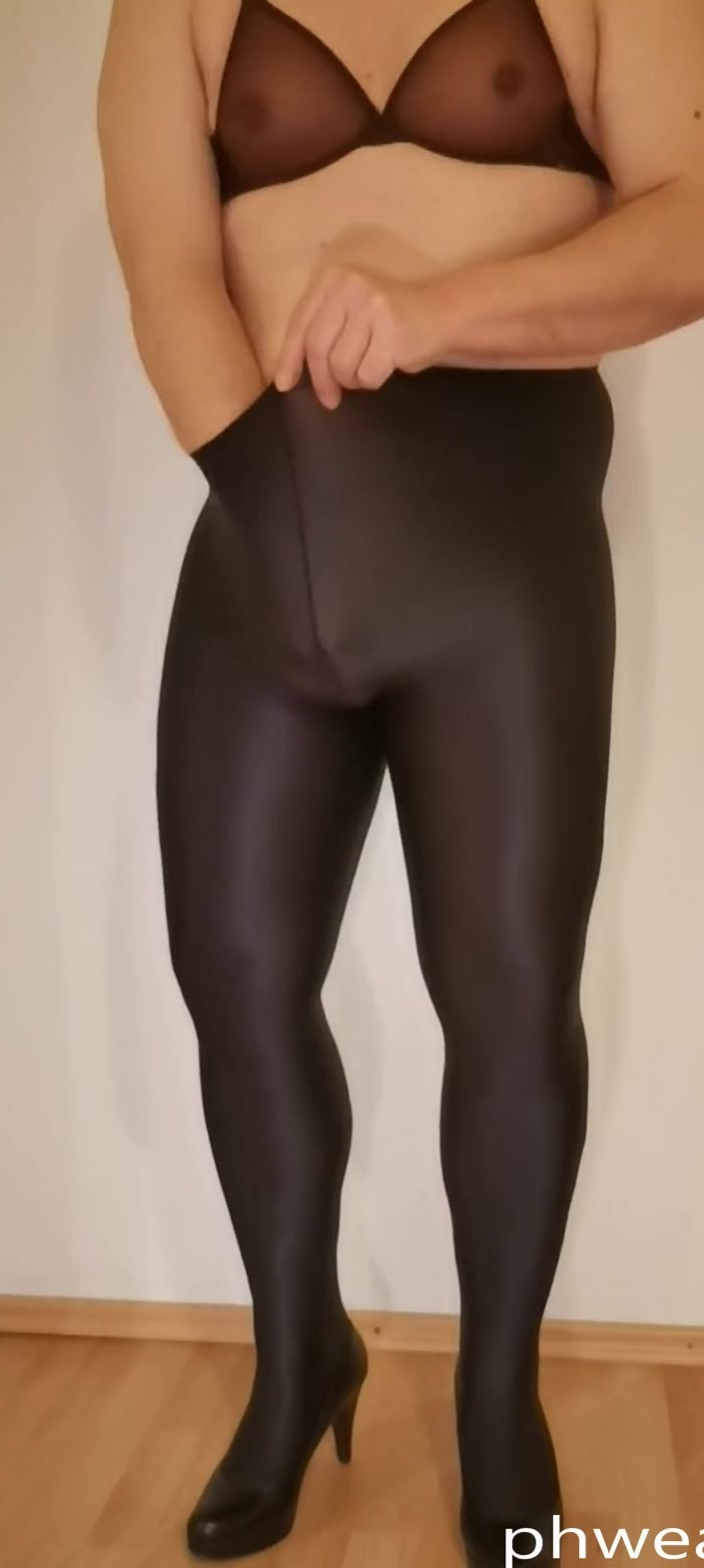 In this video I'm wearing the Gossard Glossies Bra and the Gatta Black Brillant Shiny Pantyhose. It is a mega feeling to wear this bra and these tights. The bra is super transparent and feels just great. The tights are opaque but ultra shiny.