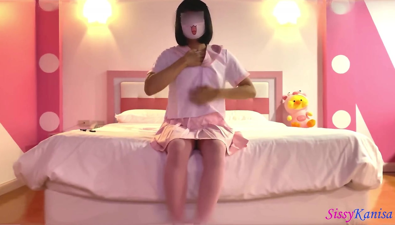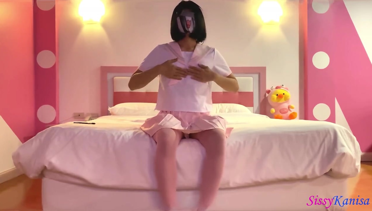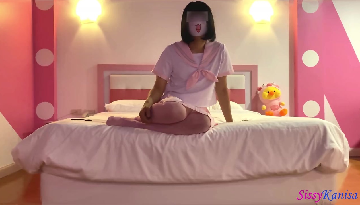 Knisa is a crossdresser who loves cuties and feminization. She just received her student uniform for sissy training. She was so excited to try it on. The uniform is pink-white Seifuku (Japanese-style sailor school uniform). A brothel room is her classroom. Let's see, what lesson she is going to learn.