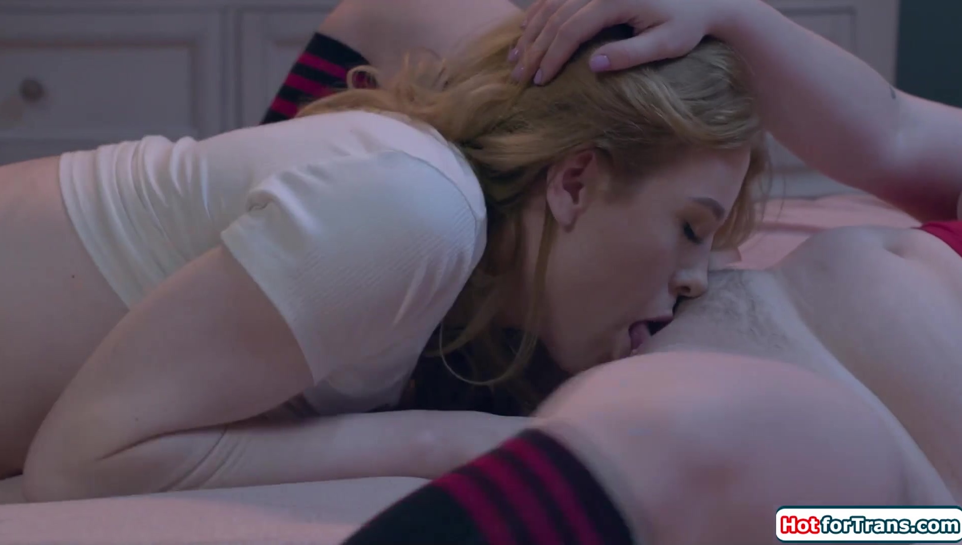 Eliza Eves and her busty tgirl friend Erica Cherry make out on the bed.The big tits shemale gets her boobs sucked and licks the petite babes pussy.Eliza sucks off the trans cock and is pussy fucked.She then rides her ts gfs hard tranny dick