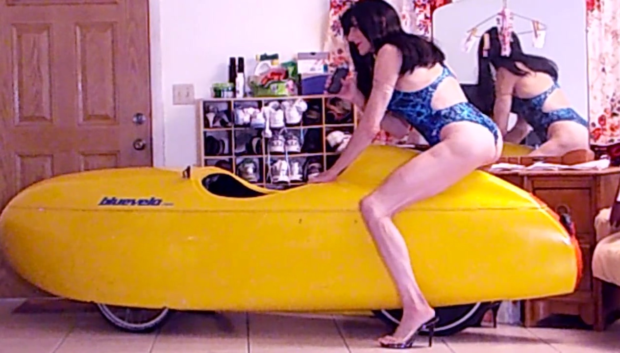 two She-Male-Dolls Take Turns Milking On A Velo-Truck