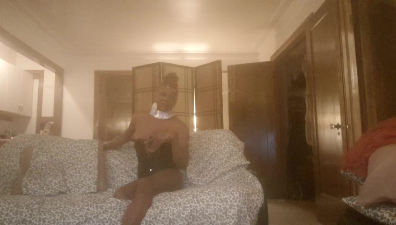 Latina TRANSSEXUAL in harness taunting and jacking her good-sized meat
