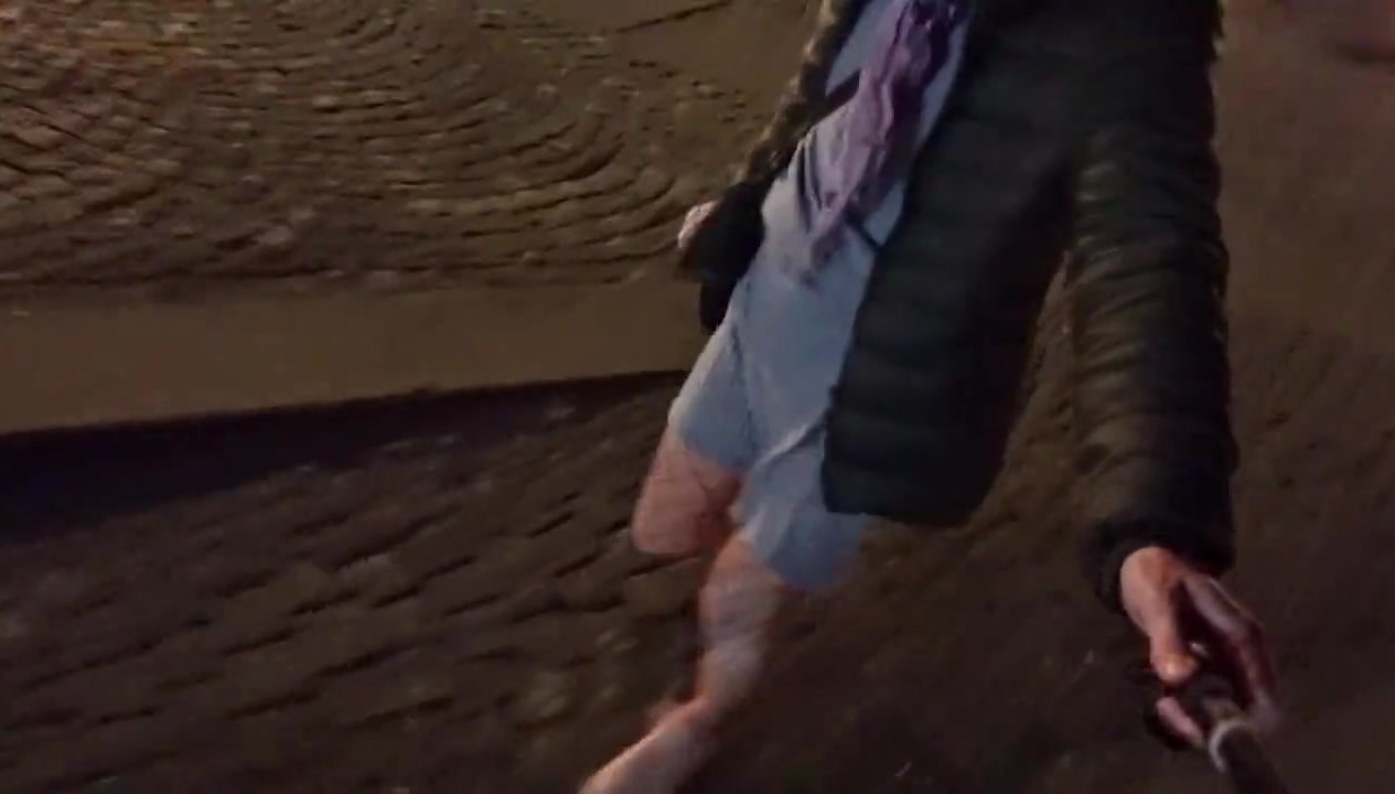 inexperienced crossdresser kellycd2022 peeing and fapping outdoor on the driveway ...