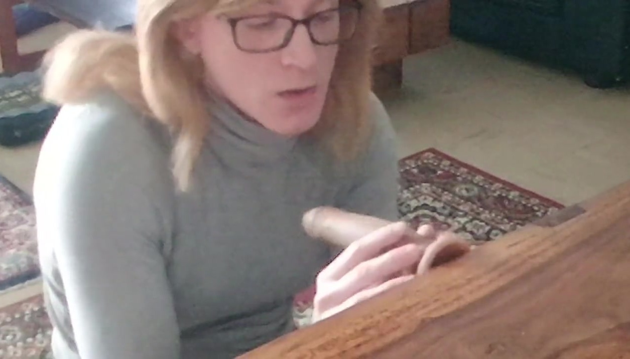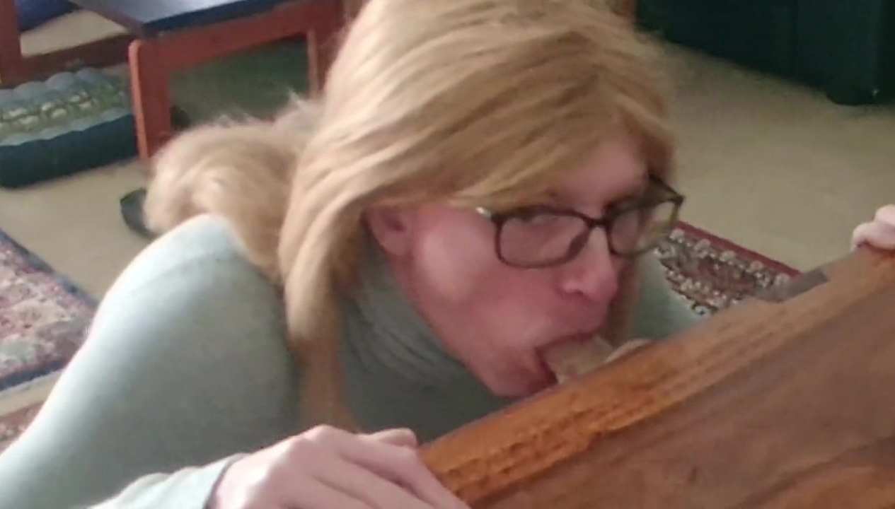 Sissy Michelle shows off her normnal day outfit and serves a cock at her desk.