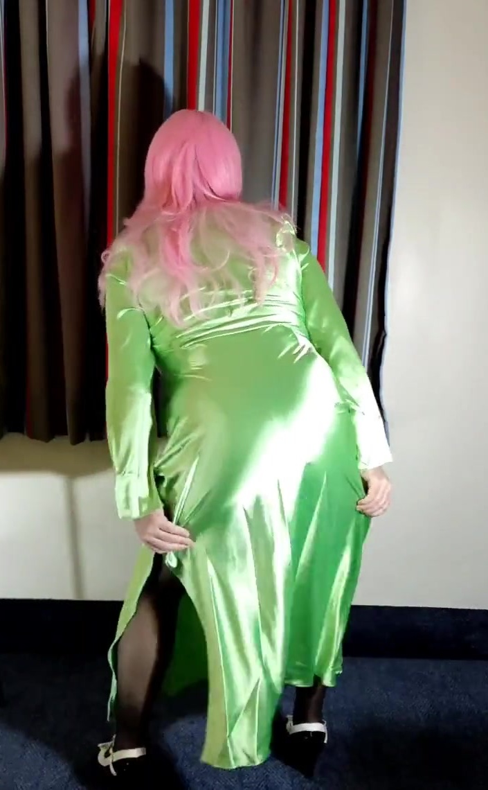 Sex crossdresser Nottstvslut in superhot liquid satin green dress. Hot satin fetish