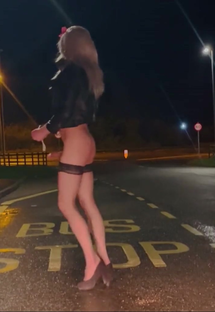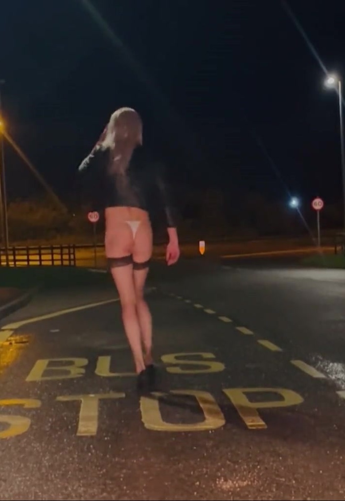 Sunny naked close to engaged road