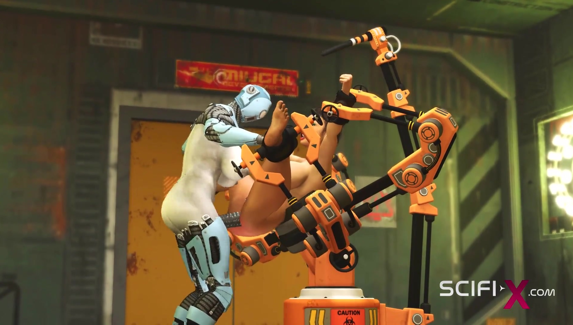 I just want your penis! Lady robot ladyboy screws a glorious handcuffed chesty black-haired in the sci-fi lab