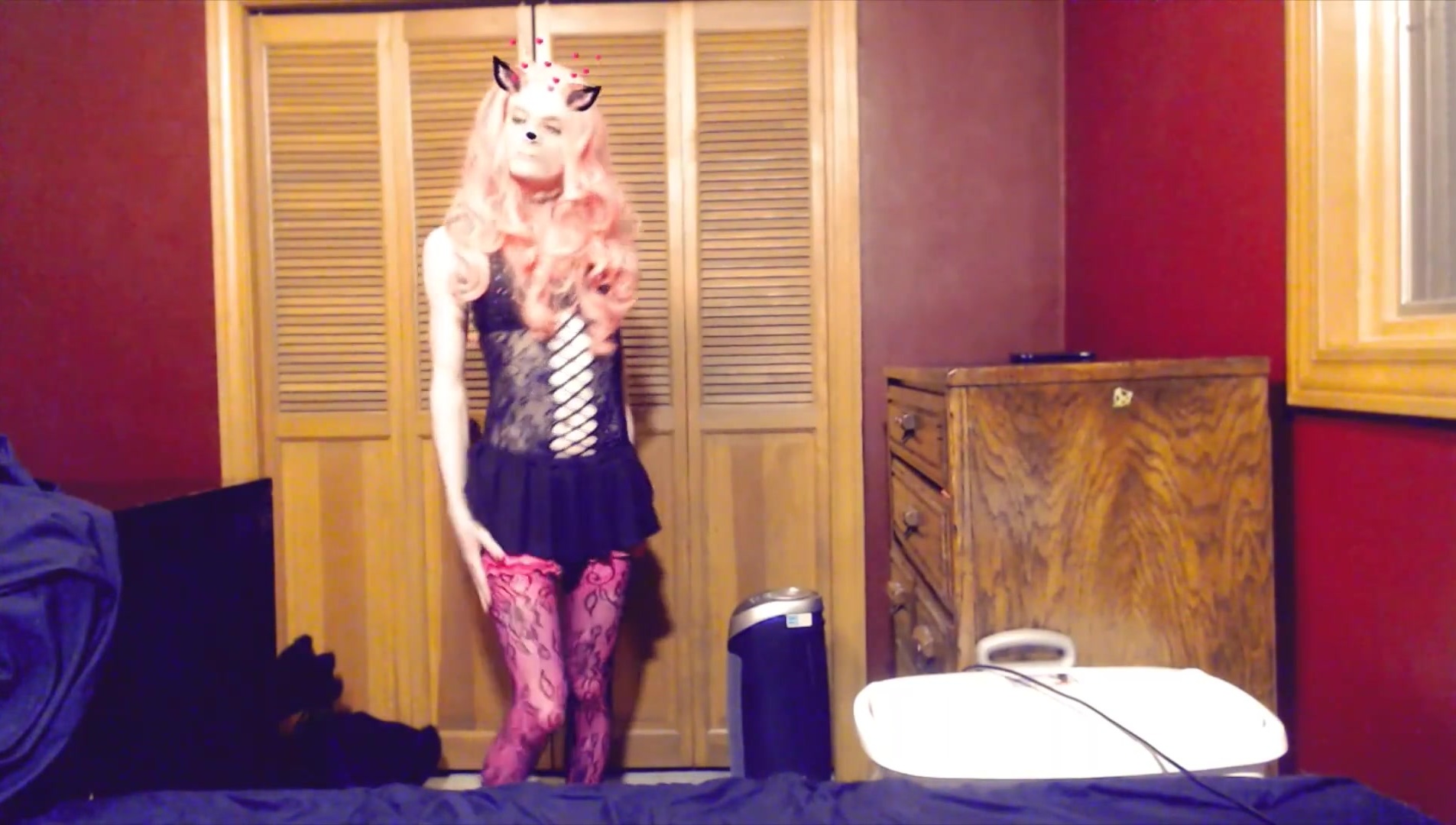 Sissy Crossdresser switching clothes for sofa