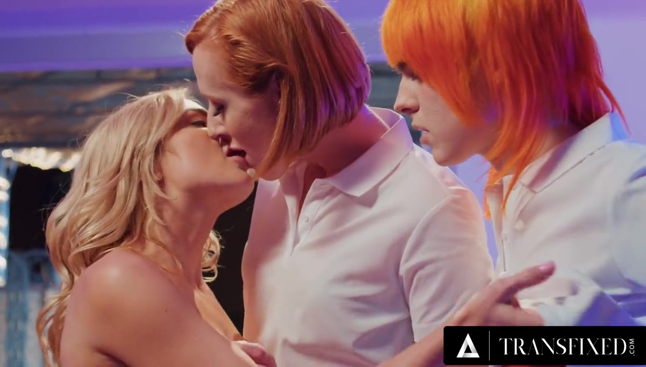 HYPNOTIZED - Sandy-Haired Trans Shiri Allwood & Jean Hollywood Give Kenzie Anne Lubricated Rubdown With Facial Cumshot