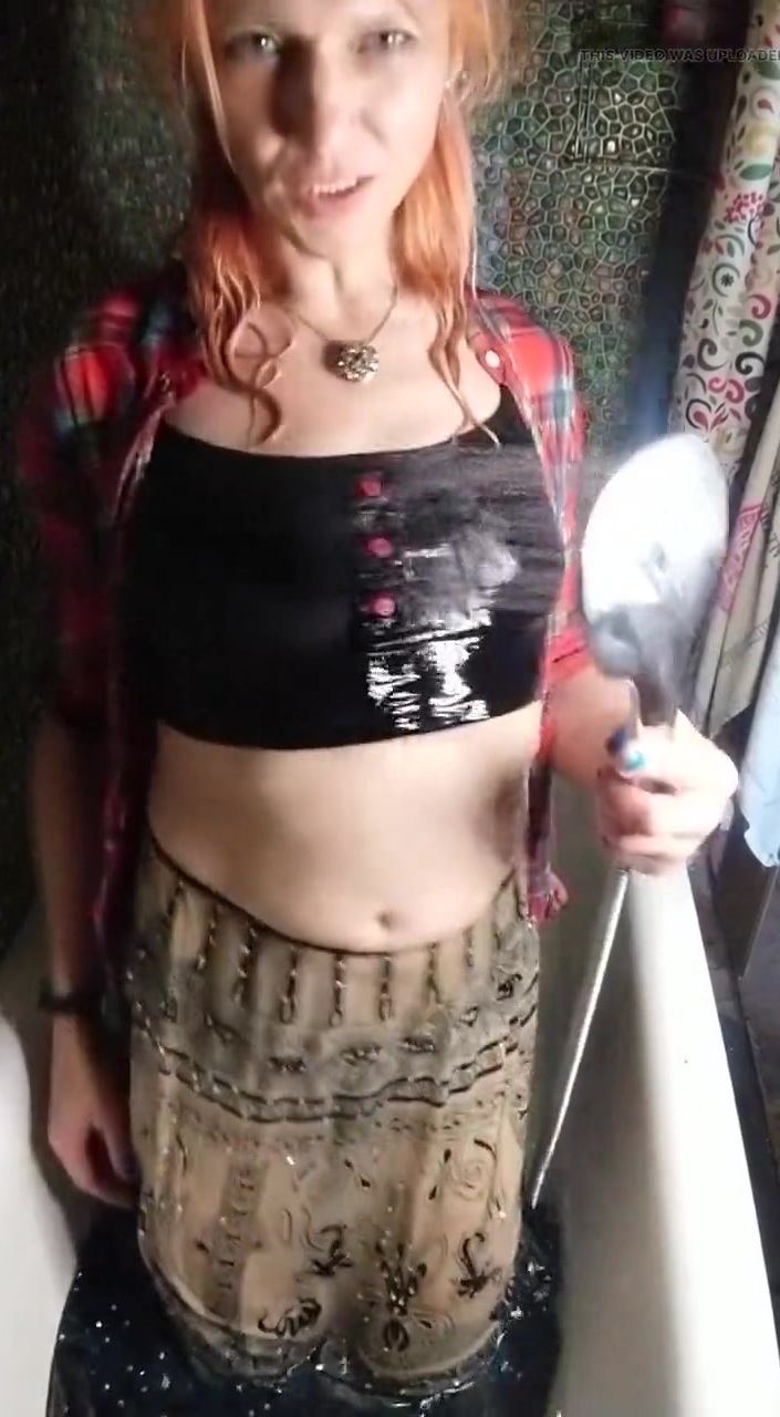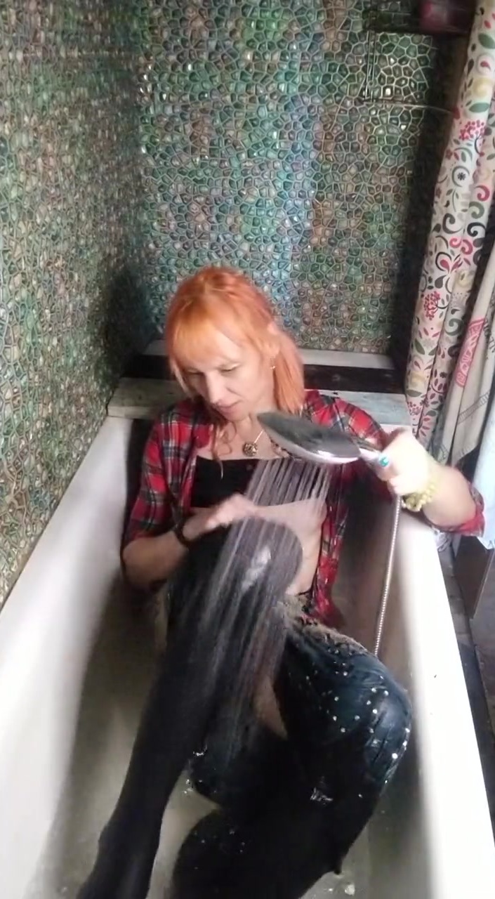 Wetlook in bathtub in microskirt, top and tights... Dousing clothes
