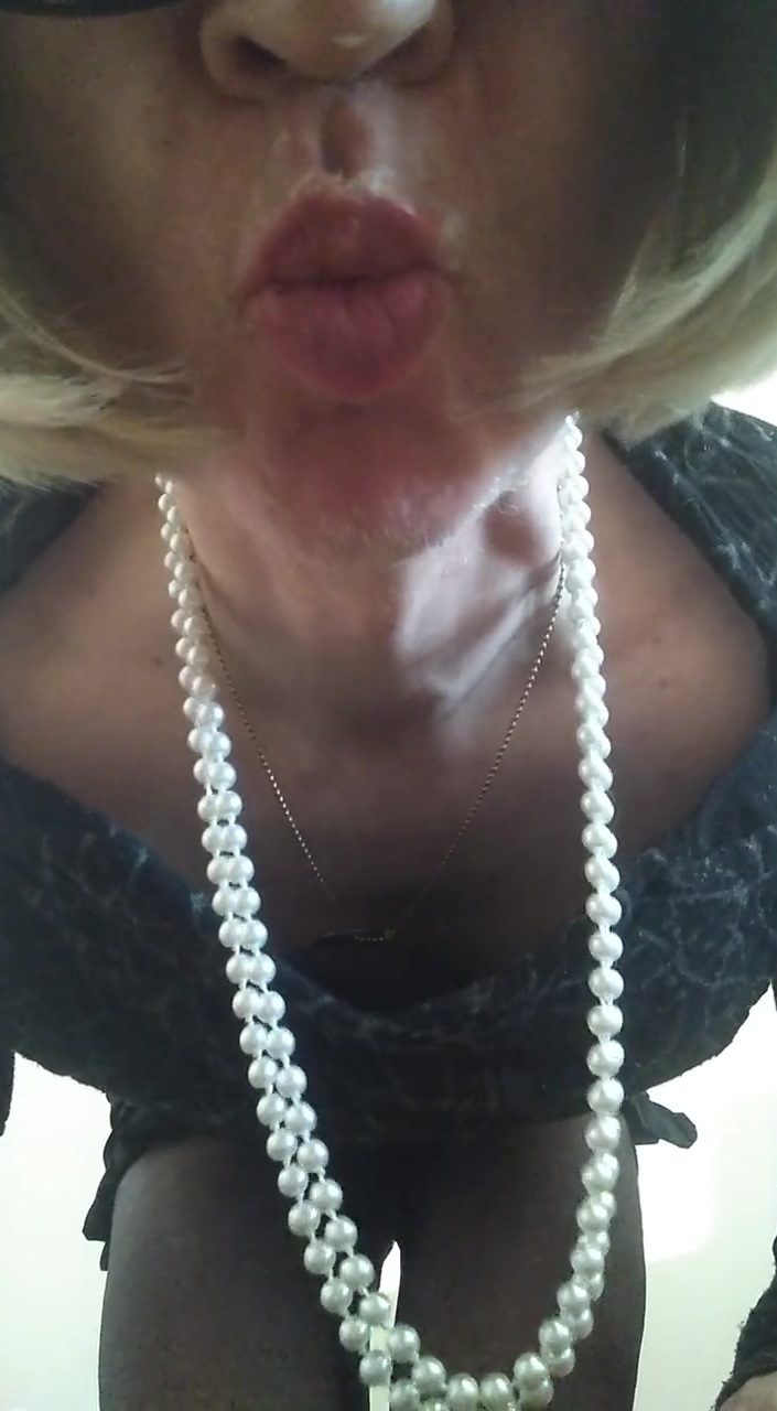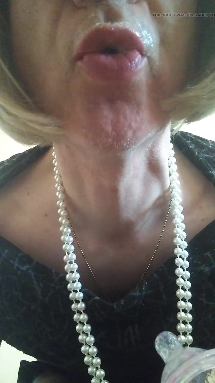 Plugged Sissy in fishnets plays with a magic wand and guzzles her jism