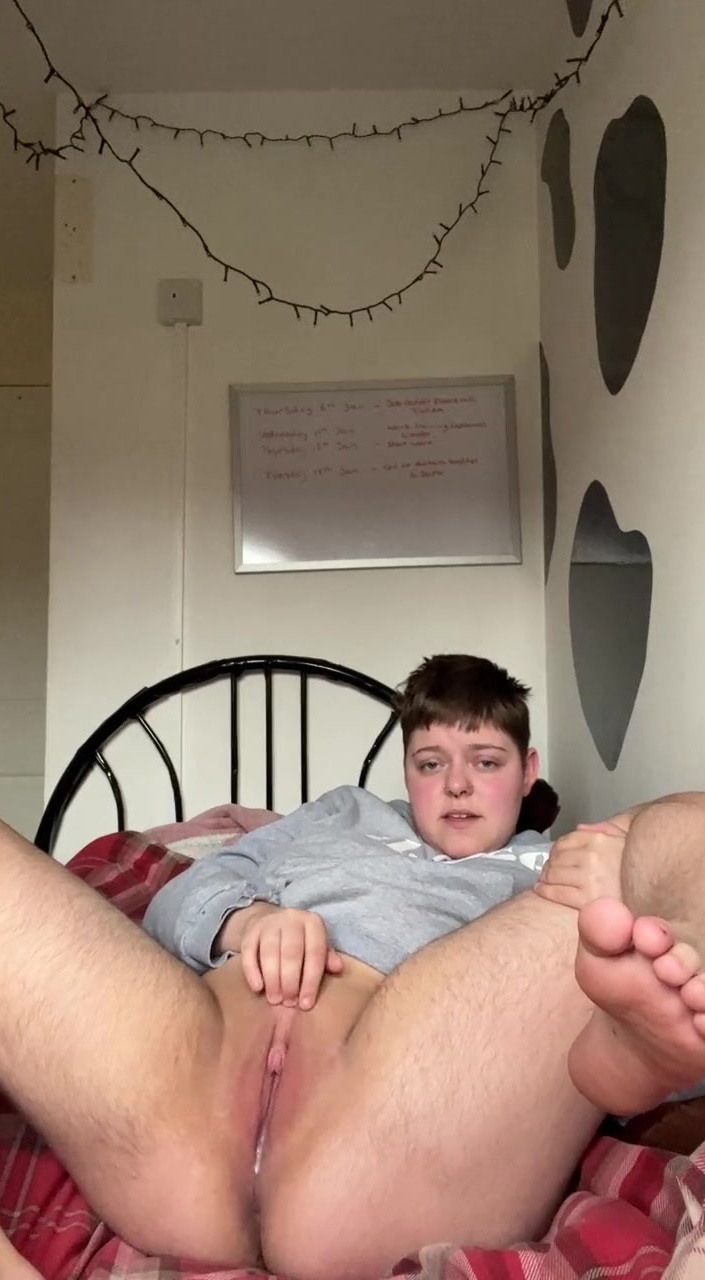 Trans boy Alexander wanks with his bare feet out at the camera