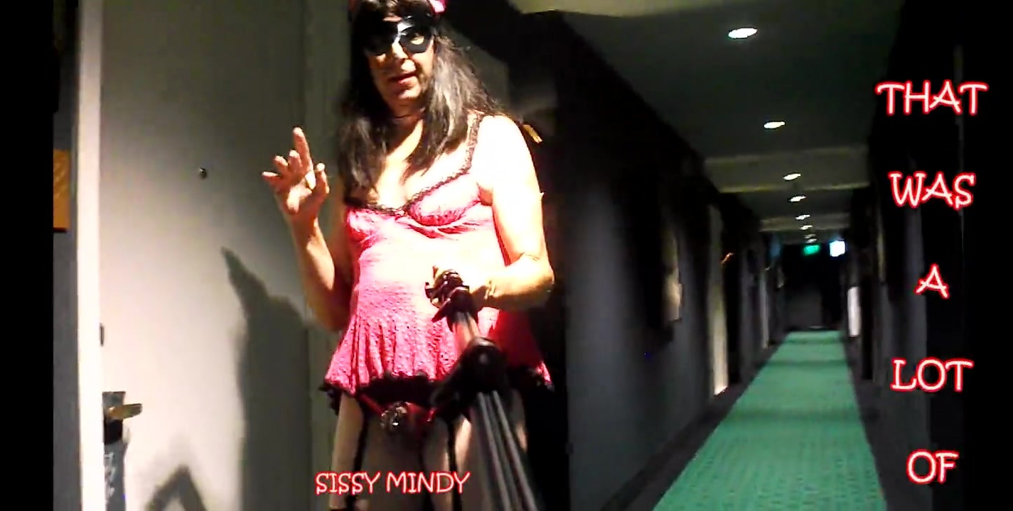 Watch Sissy Mindy walk the hallway halls dressed in lingerie with her chastity cage exposed
