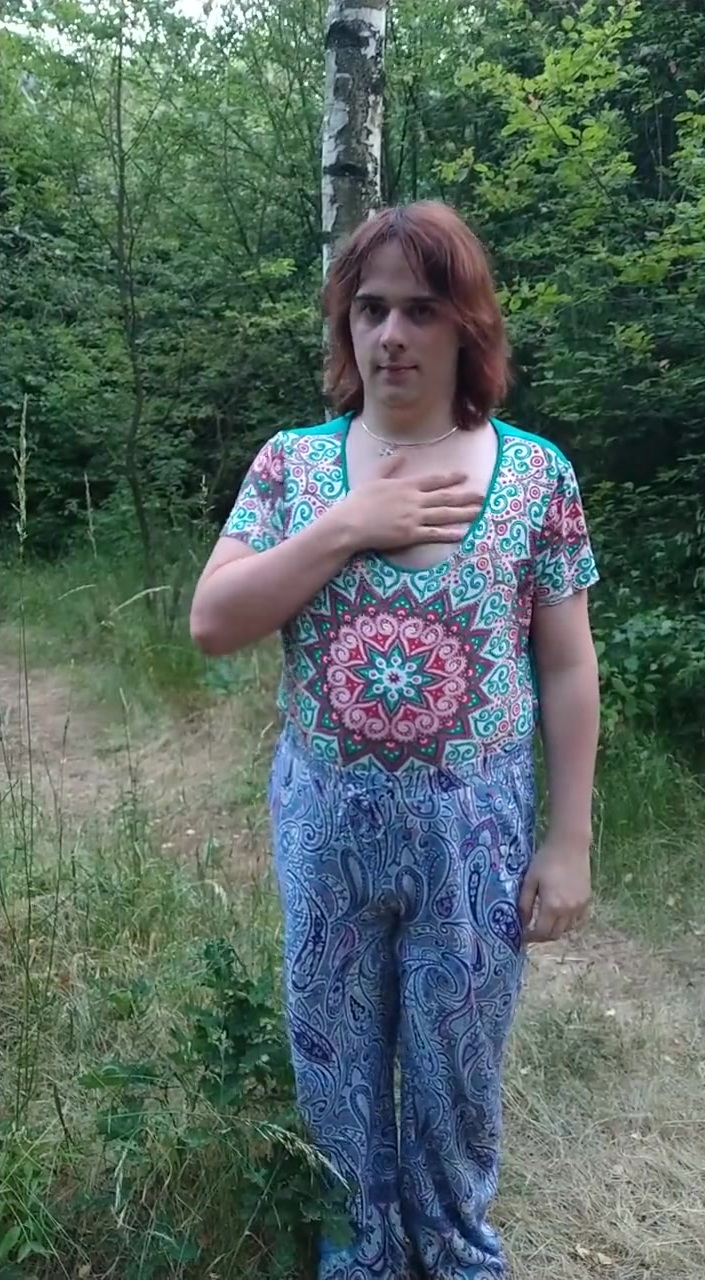 Sissy femboy bare and lubricated up on a public trail in the forest - CABOOSE PLUM...