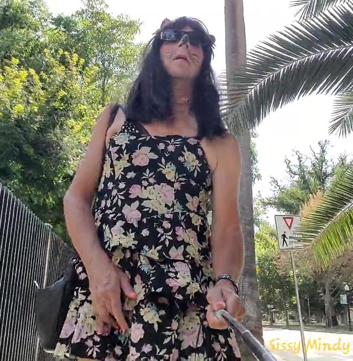 Walking down the street in my favorite summer mini dress with my kitty tail & ears on flashing my chastity cage.