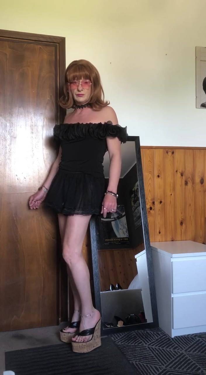 Wifey sissy Andreina shows you her high heels with anklet feet and her eager ass always wearing the chastity cage