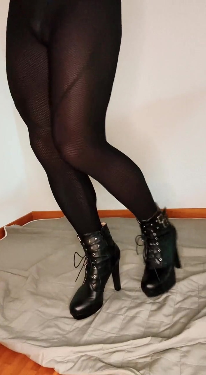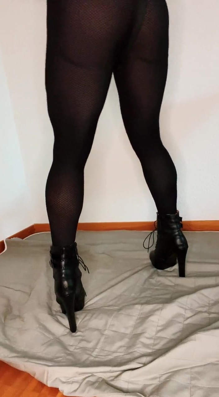 Trans Dame Stretches Her Gams in Black Tights and Magnificent High-Heeled Shoes - ...