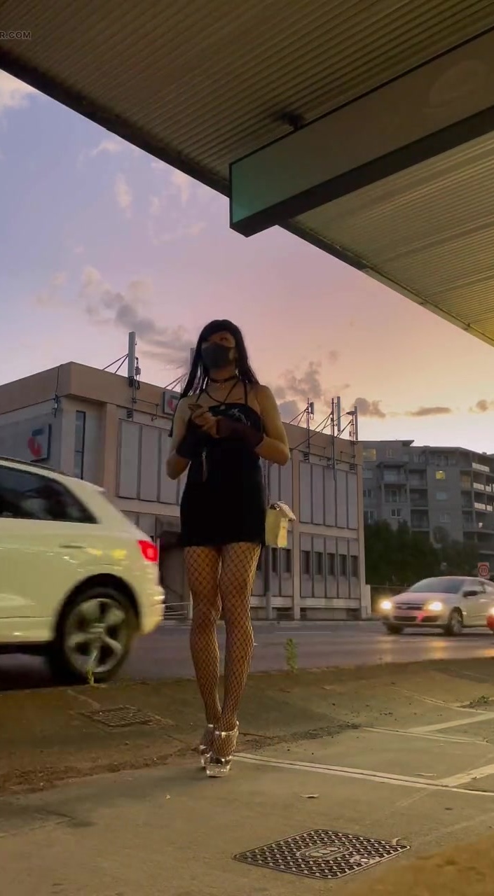 Took a walk again with this fishnet stockings and black dress. Love the cars slowing down for me. Peeks from inside the car are the best❤️