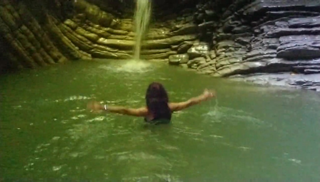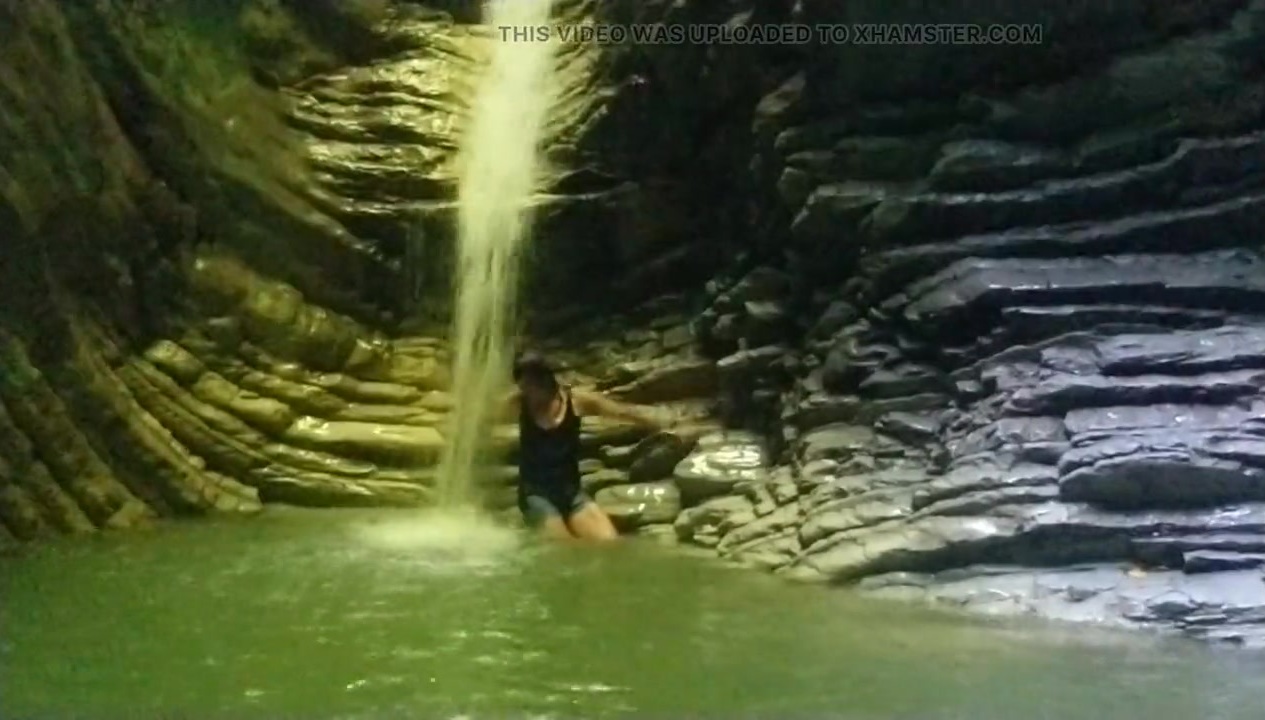 Alexa Cosmic ladyboy swimming at waterfall in tee-shirt and t-t-shirt... 1st waterfall
