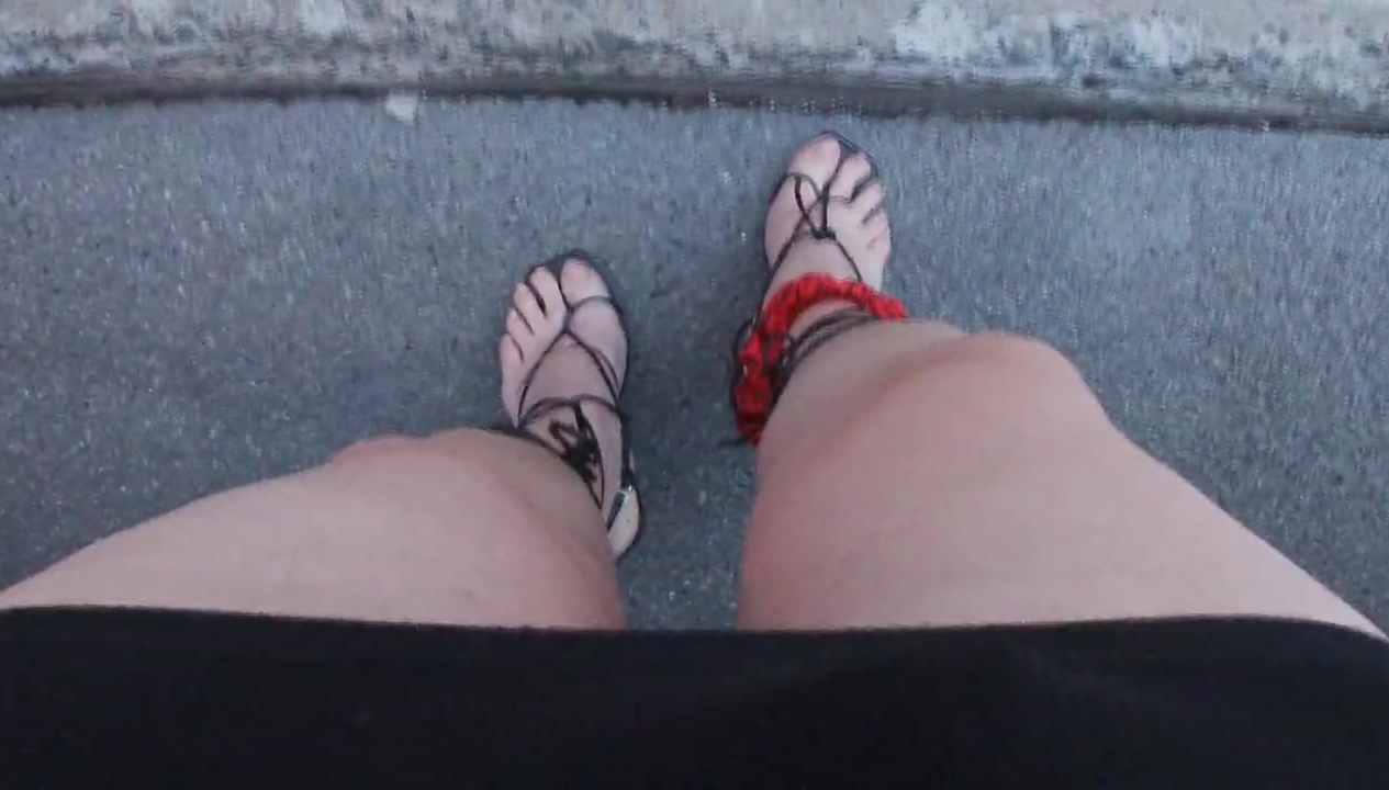 A sissy Mature CD whoring on the streets in the daylight dressed in Underwear high-heeled slippers underpants brief miniskirt