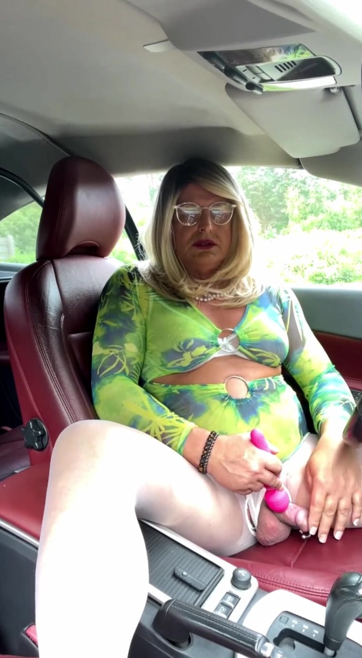 Inexperienced crossdresser Kellycd2022 fabulous cougar loving an afternoon drive stroking and cuming over her lil white undies