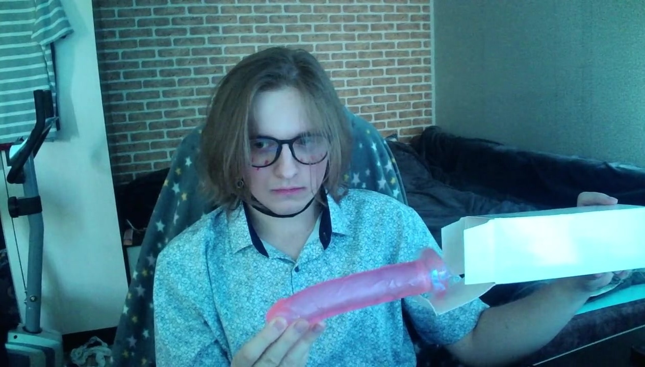 I'm open box with my first pink dildo. When I saw him, I was very confused, he's so big and pink. Do you think I look cute enough here? If yes, then I can use this image for some other videos