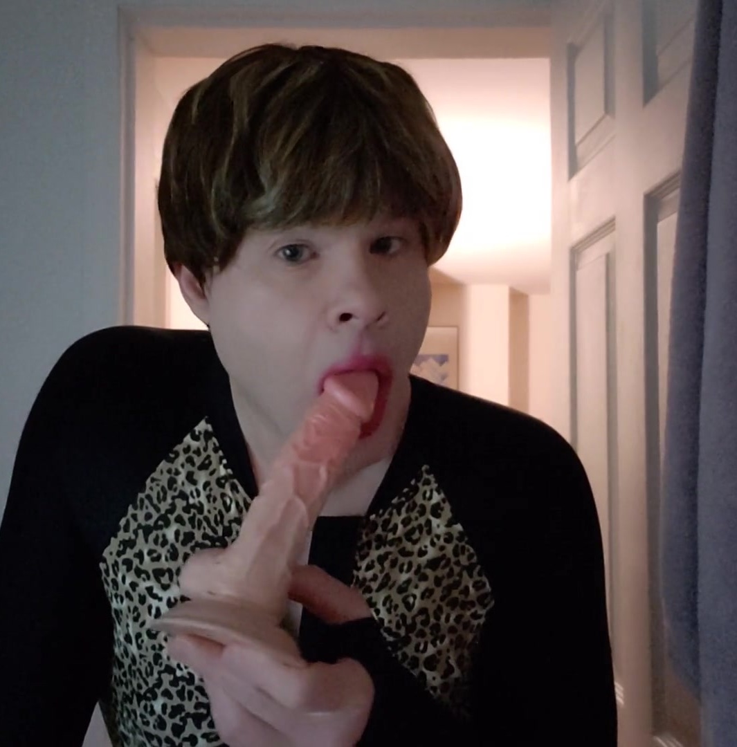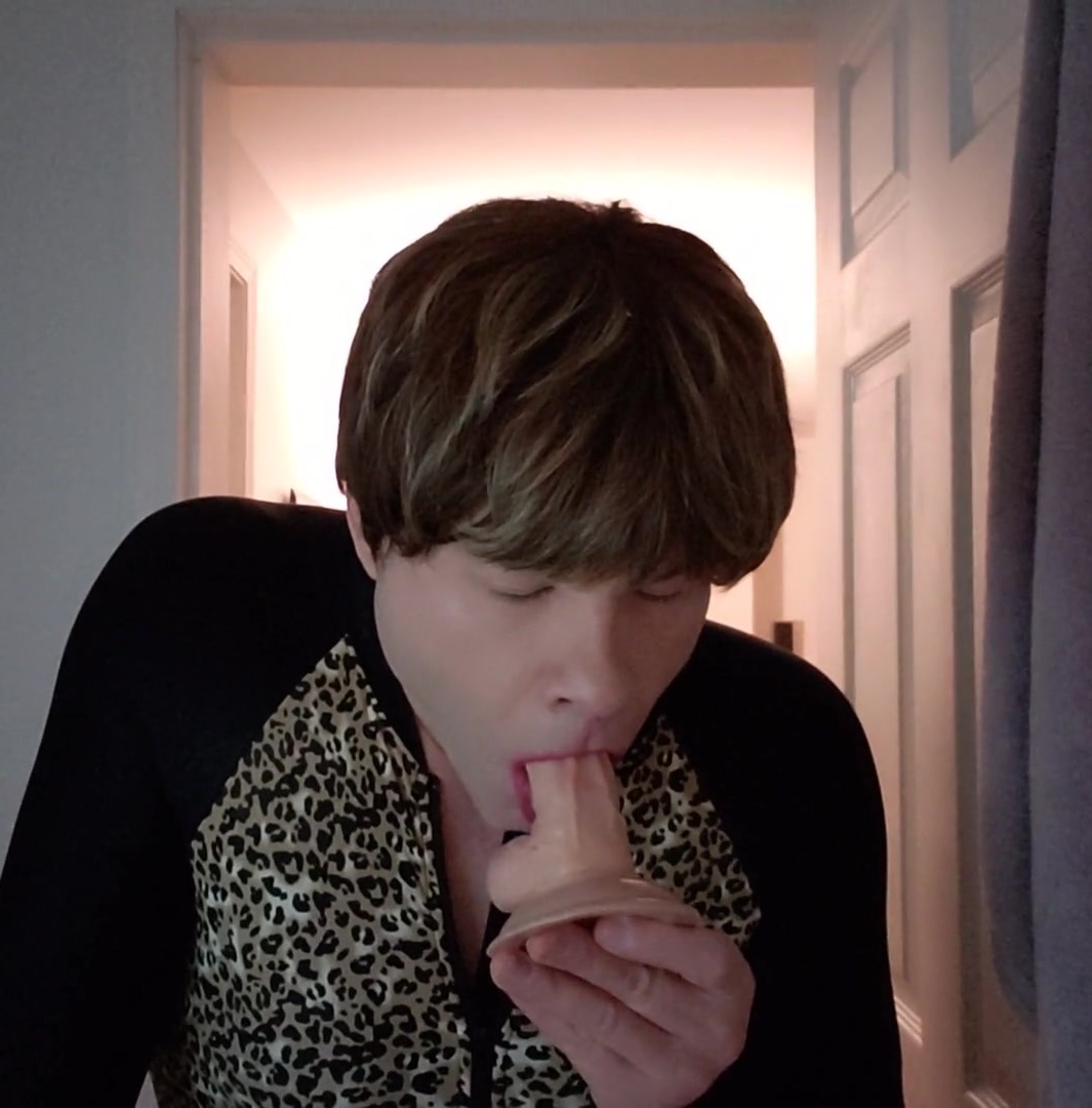 Sexy Sissy Cunt decided to go to the lake one night in her new legless leopard pattern wet suit and when she returned home she decided to suck on something as no men were around at the beach.