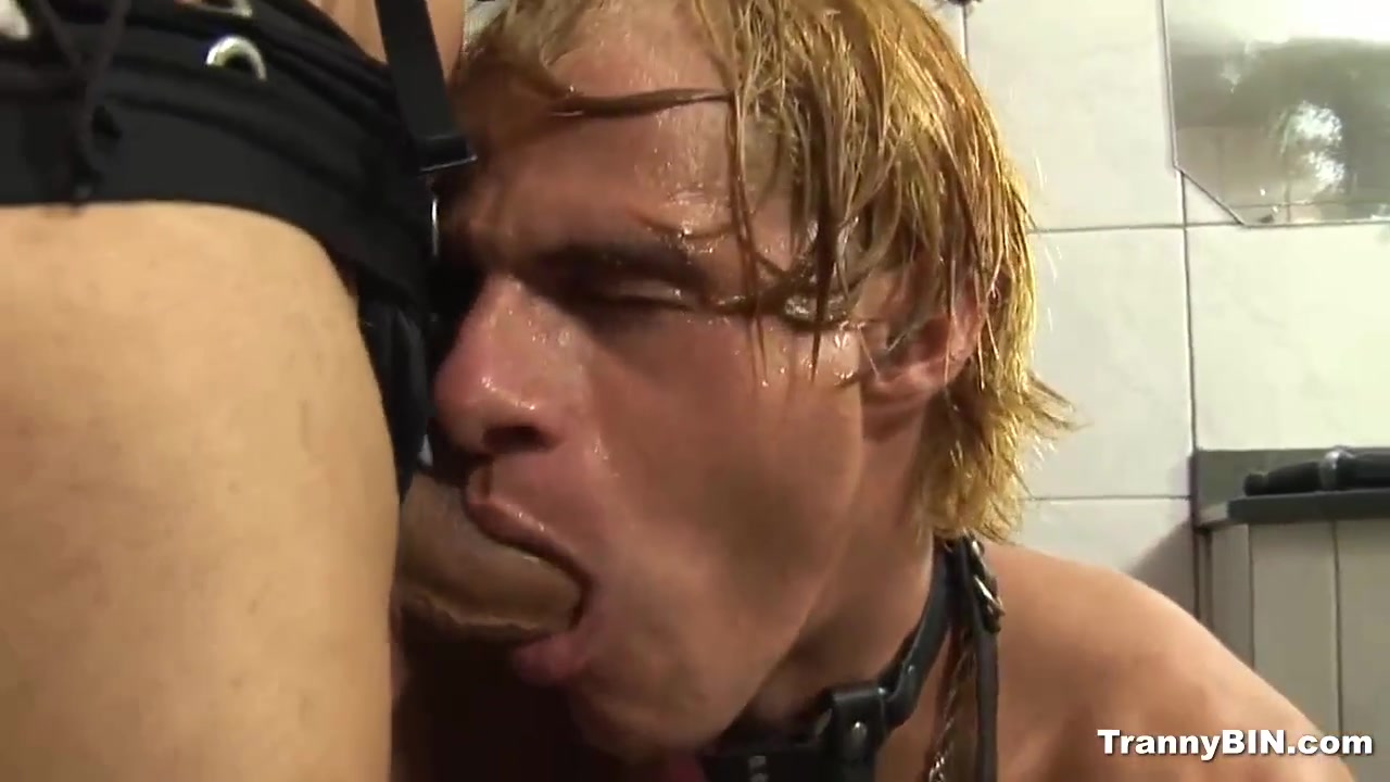 Transgirl Dominatrix Spunks on a Gay-For-Pay Stud!