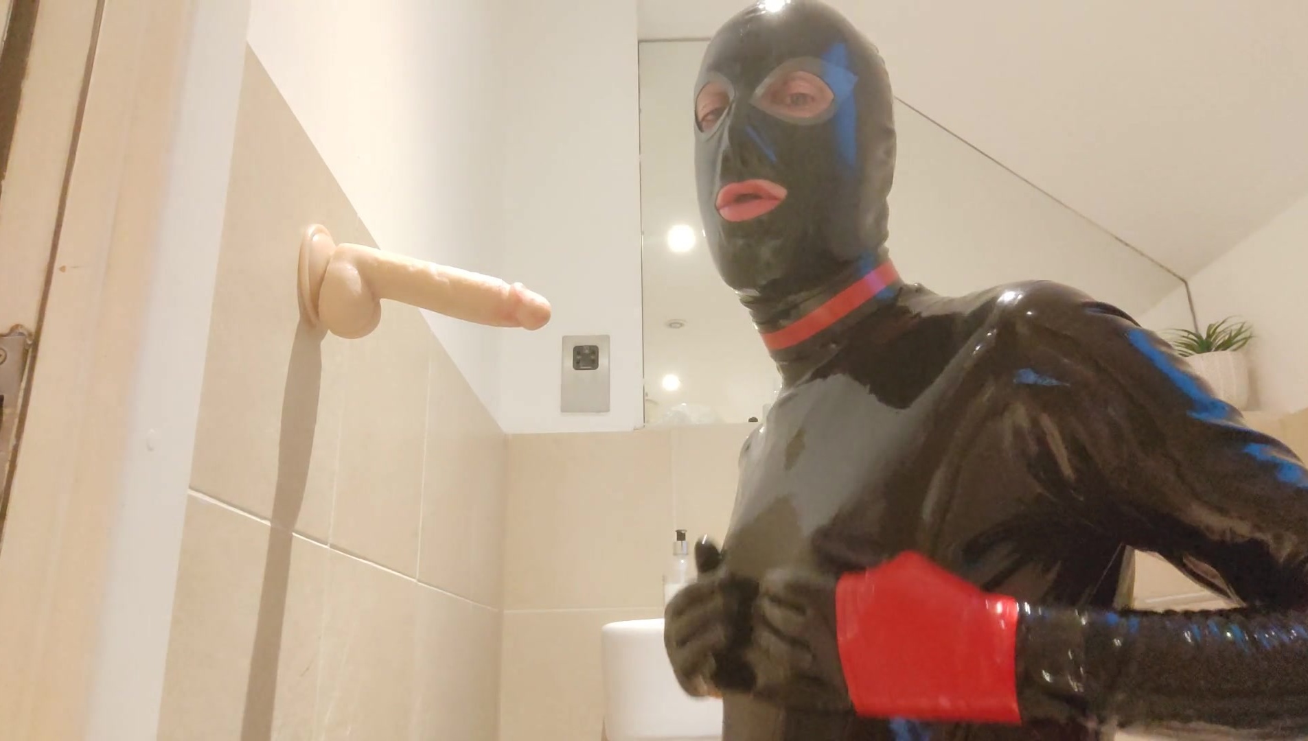 As Alice Latexy worships her dildo, her clitty is streaming under little latex skirt.