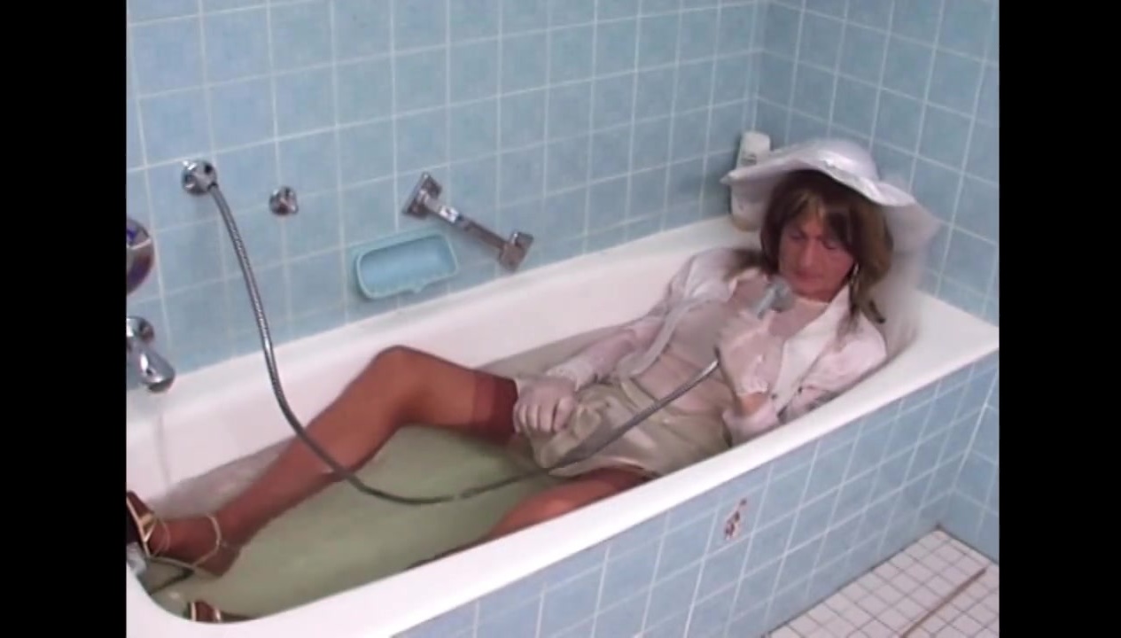 Brand fresh transvestite displaying off for the camera and making a golden douche ...