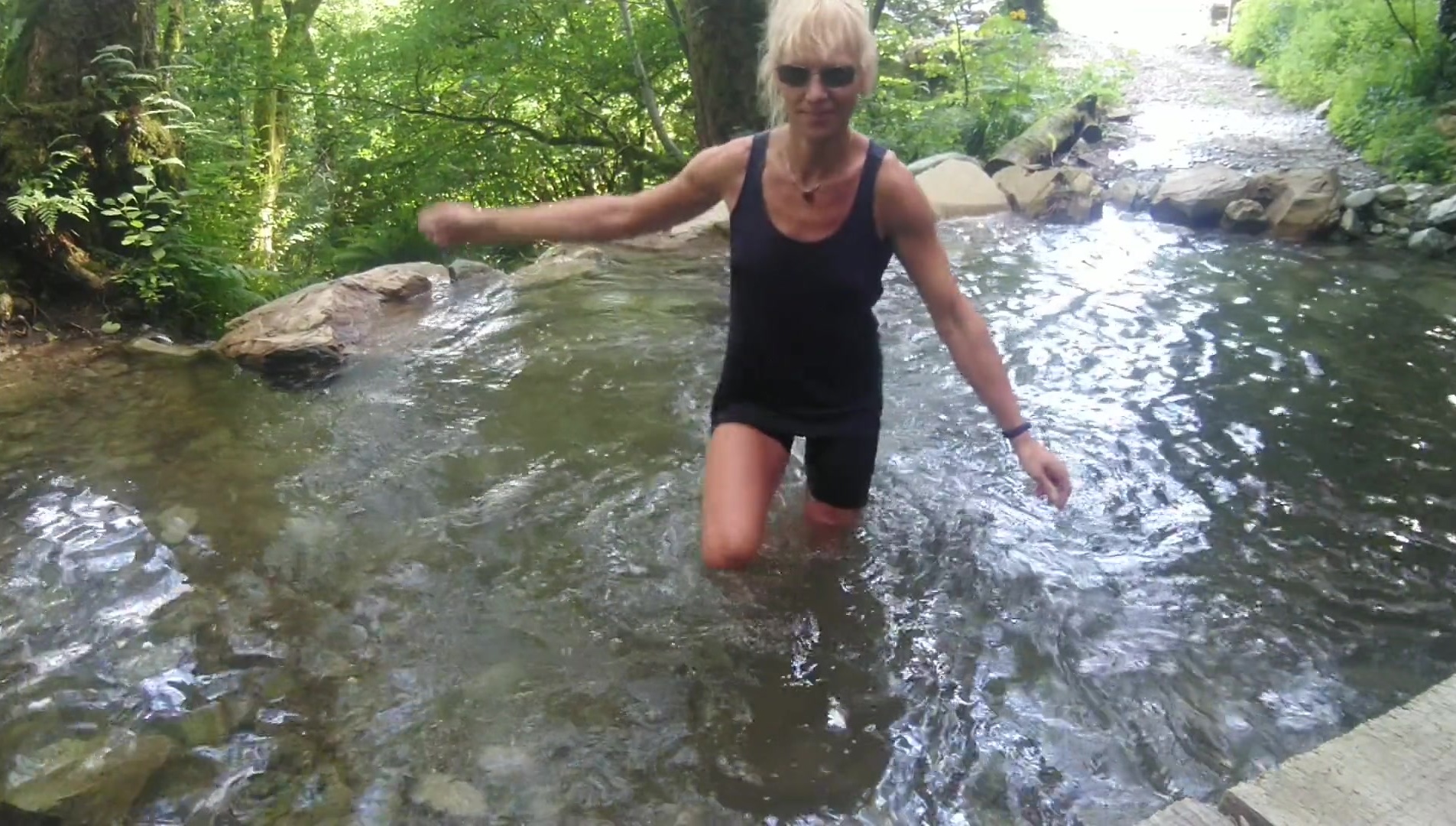 Alexa Cosmic ladyboy swimming at waterfall in tee-shirt and t-t-shirt... 1st water...