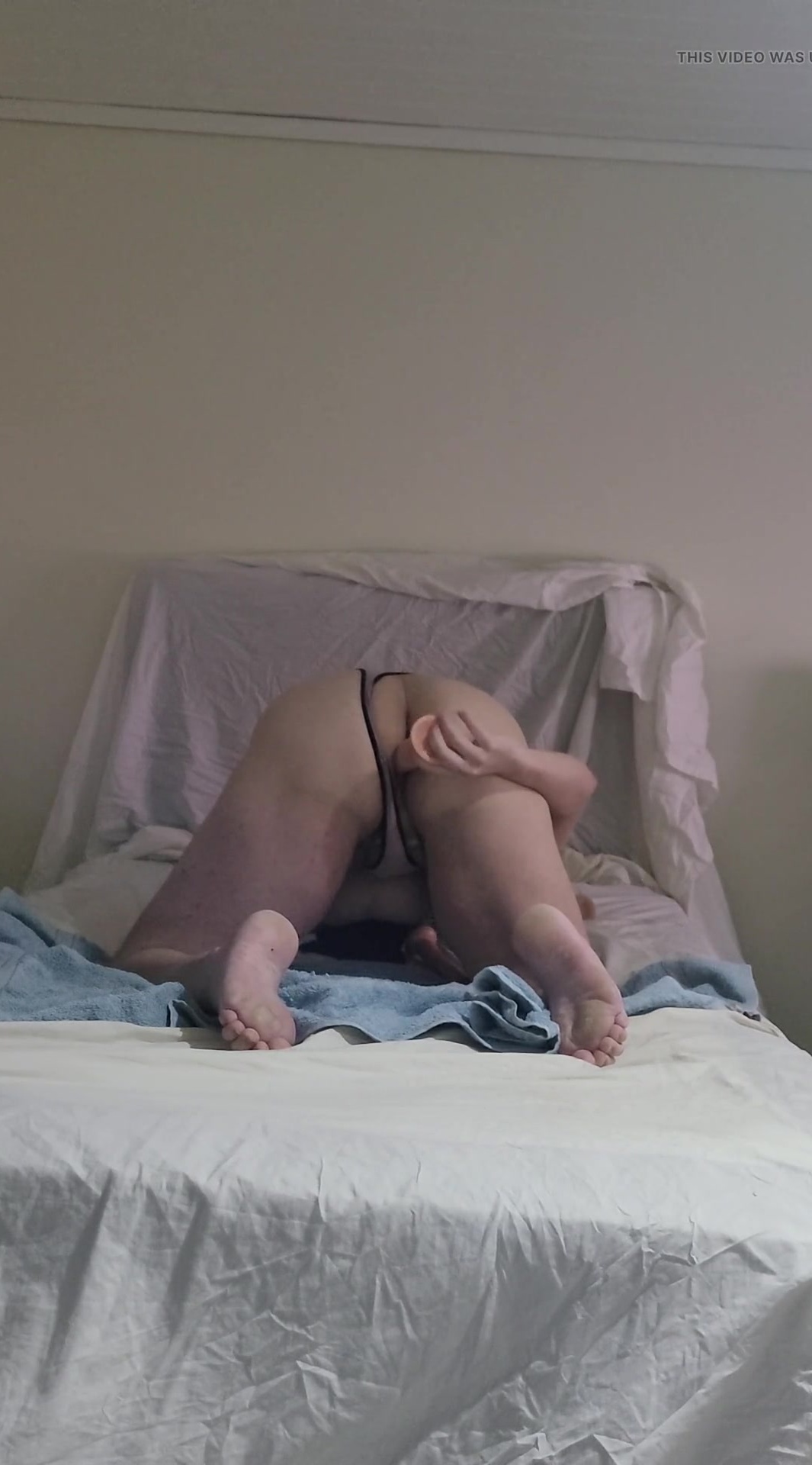 Young sissy wrecking her rump herself with a fake penis till jizz