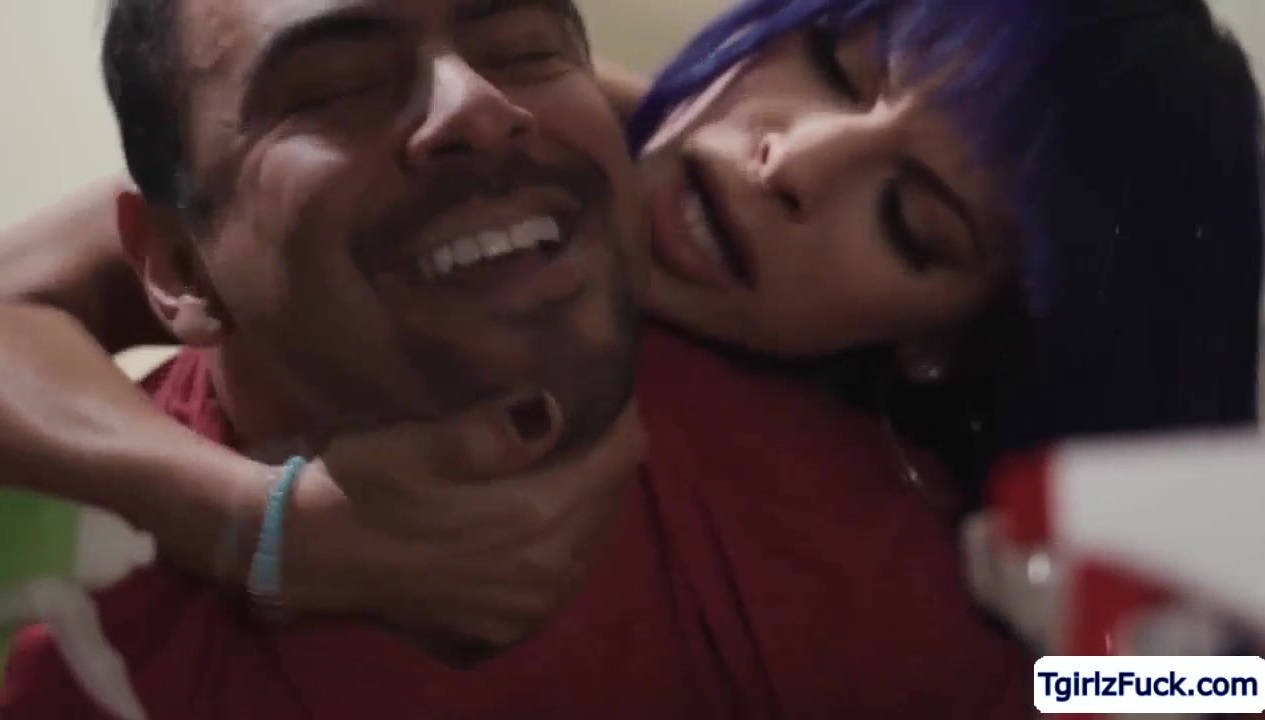 Big-Boobed t-girl Foxxy pulls down the plumbers trousers and she porks his rear entrance from behind.The humungous boobs She-Creature deep throats his prick in the kitchen.