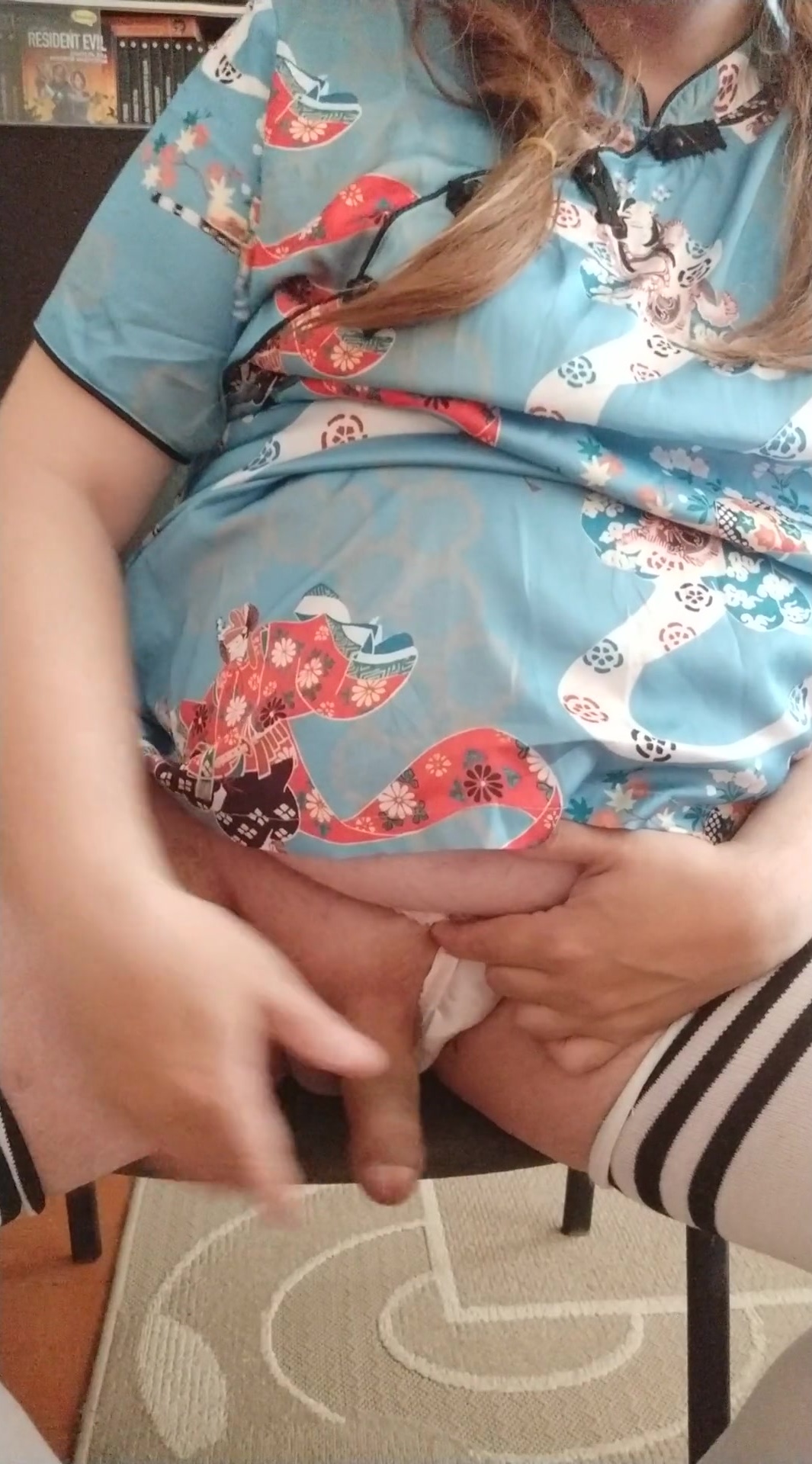 Sissy Aleksa jercing her smallish sausage in china sundress and jizz