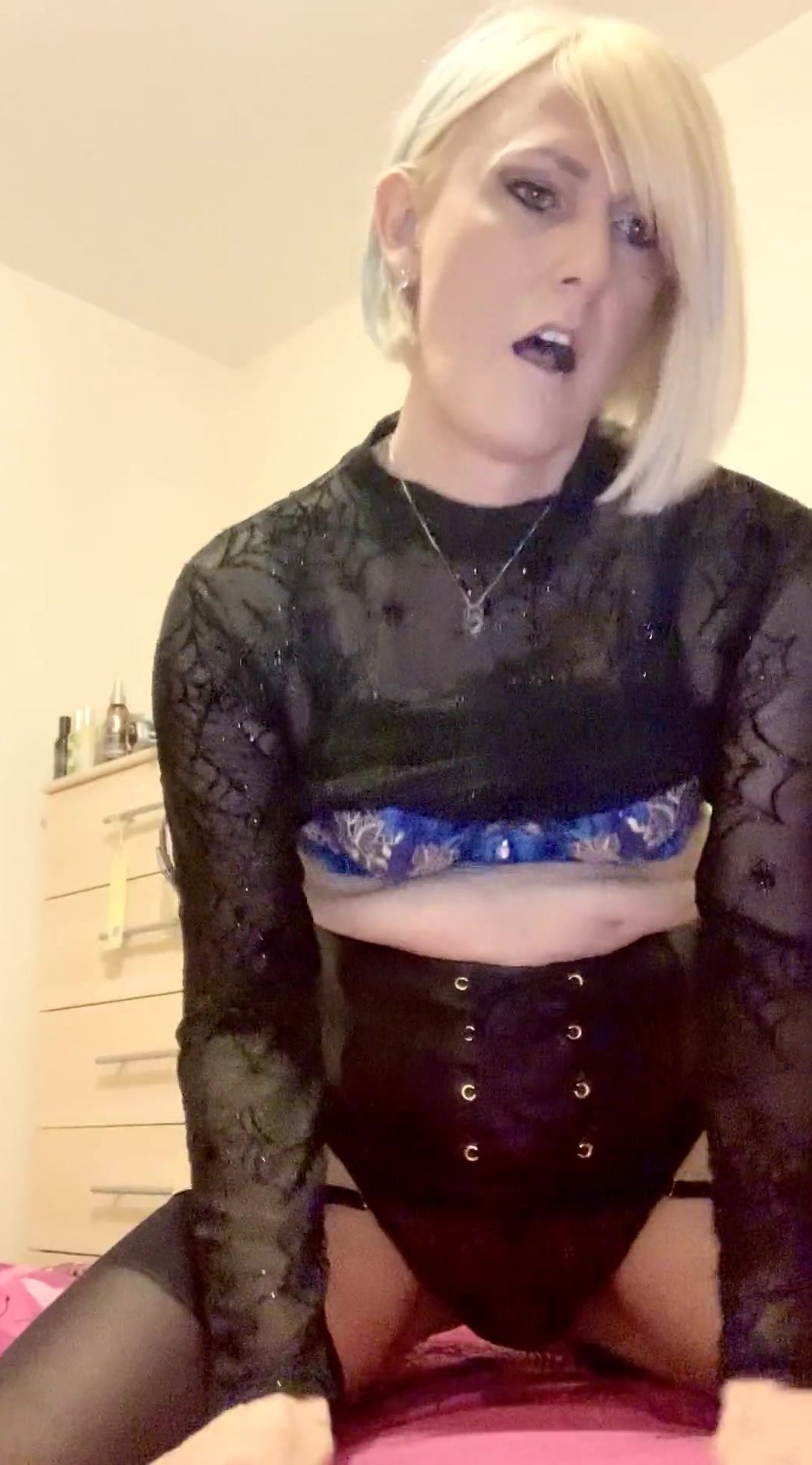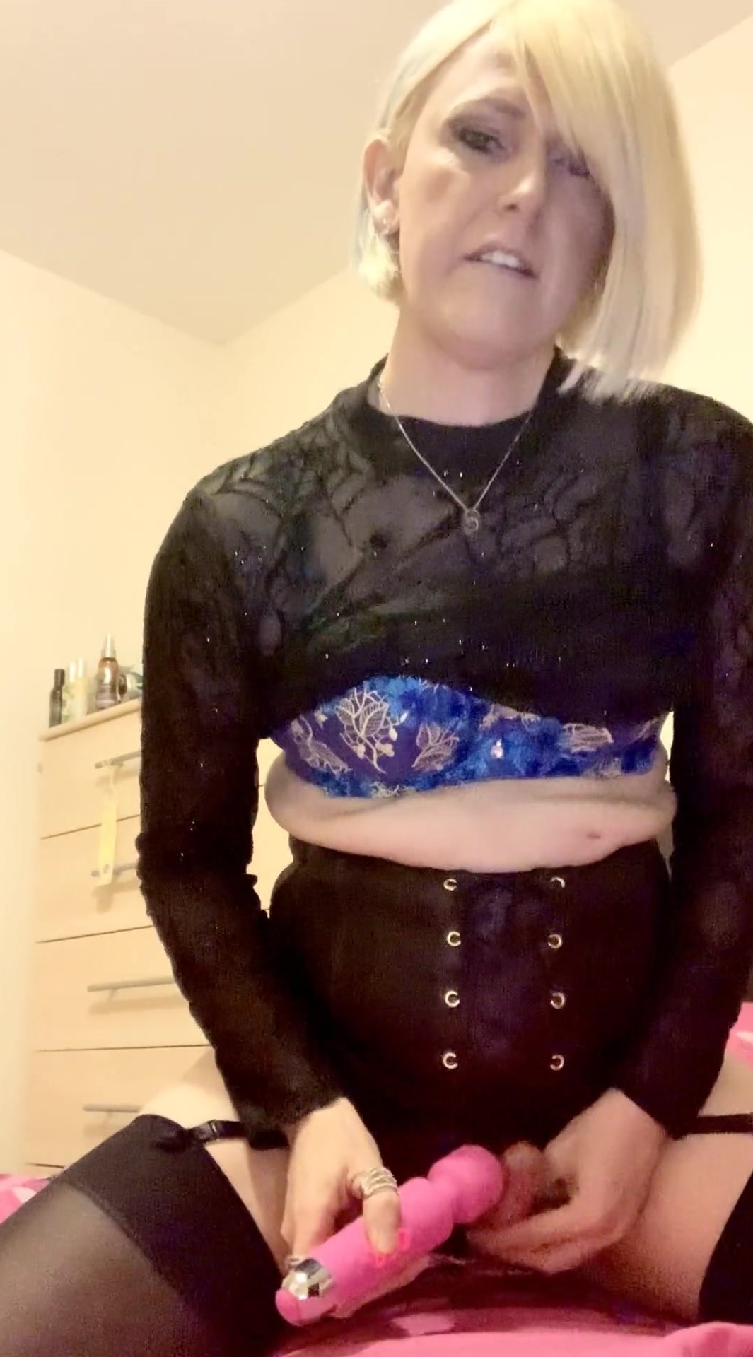 Horny cum-shot! Dressed in my spider-web dress, corset, stockings and panties! Watch me tease my cock with my wand and fuck my ass with my butt plug, taking it out and licking it! Sucking on my glass dildo then fucking my ass with it! Edging my cock until I shoot a juicy load of cum and lick it all up!