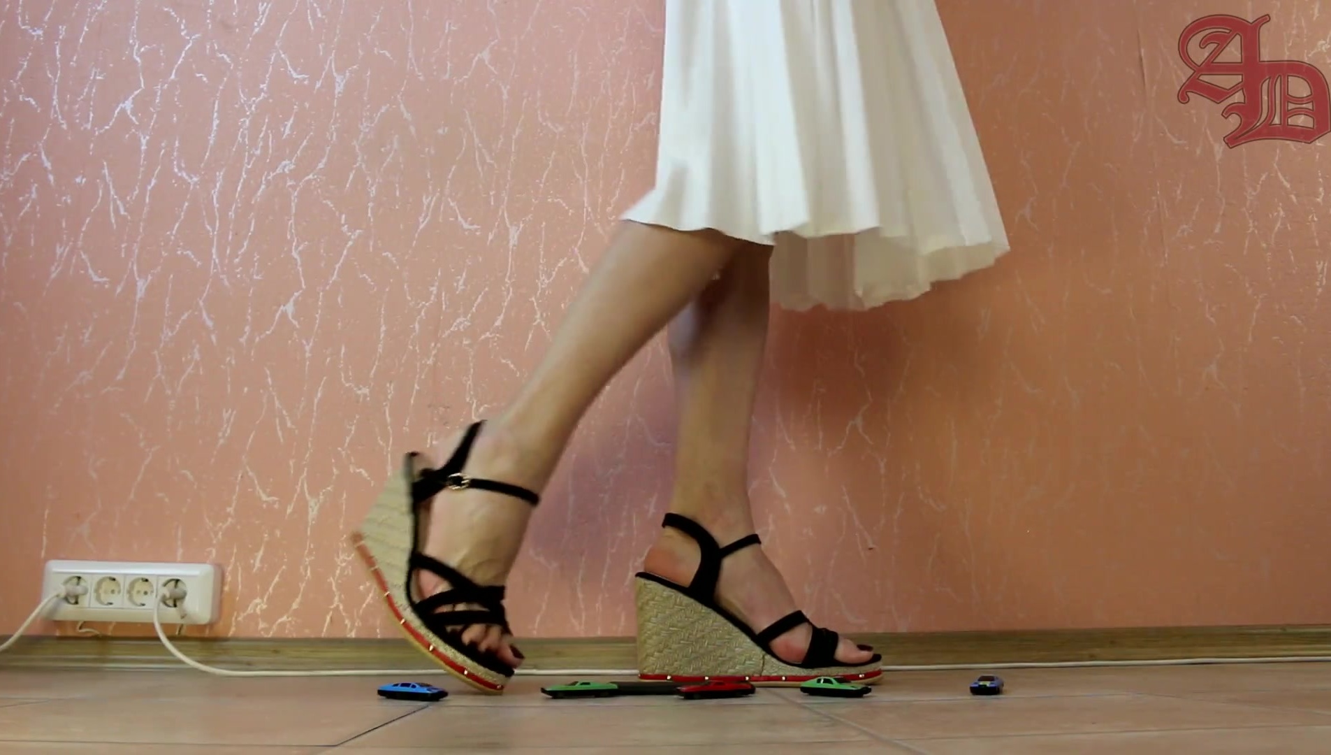 TRANSGIRL GIANTESS AMANDA KICKS IRON CAMPERS IN LONG WHITE MINISKIRT AND HIGH PLATFORM - 1 (KICK FETISH)
