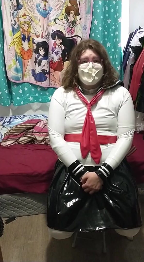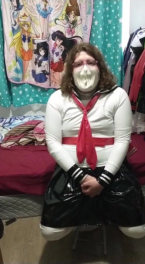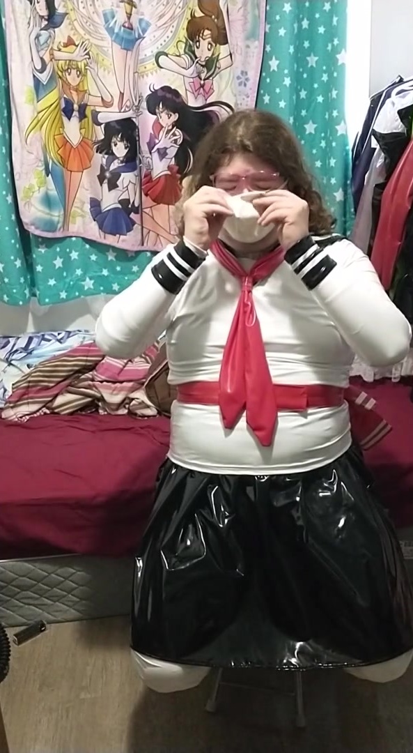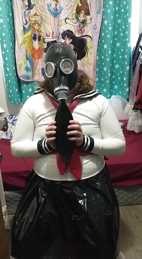 vinyl Sissy College doll does breathplay spandex mask gasmask eva helmet