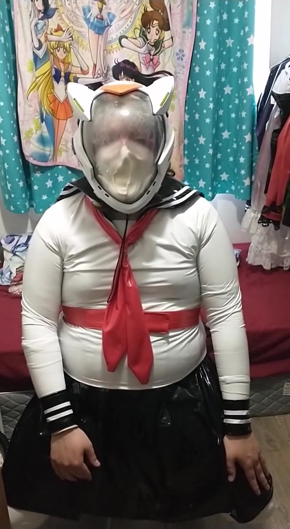 Vinyl Flip Costume Play With Eva Helmet Bagging Breathplay Kigurumi Sissy