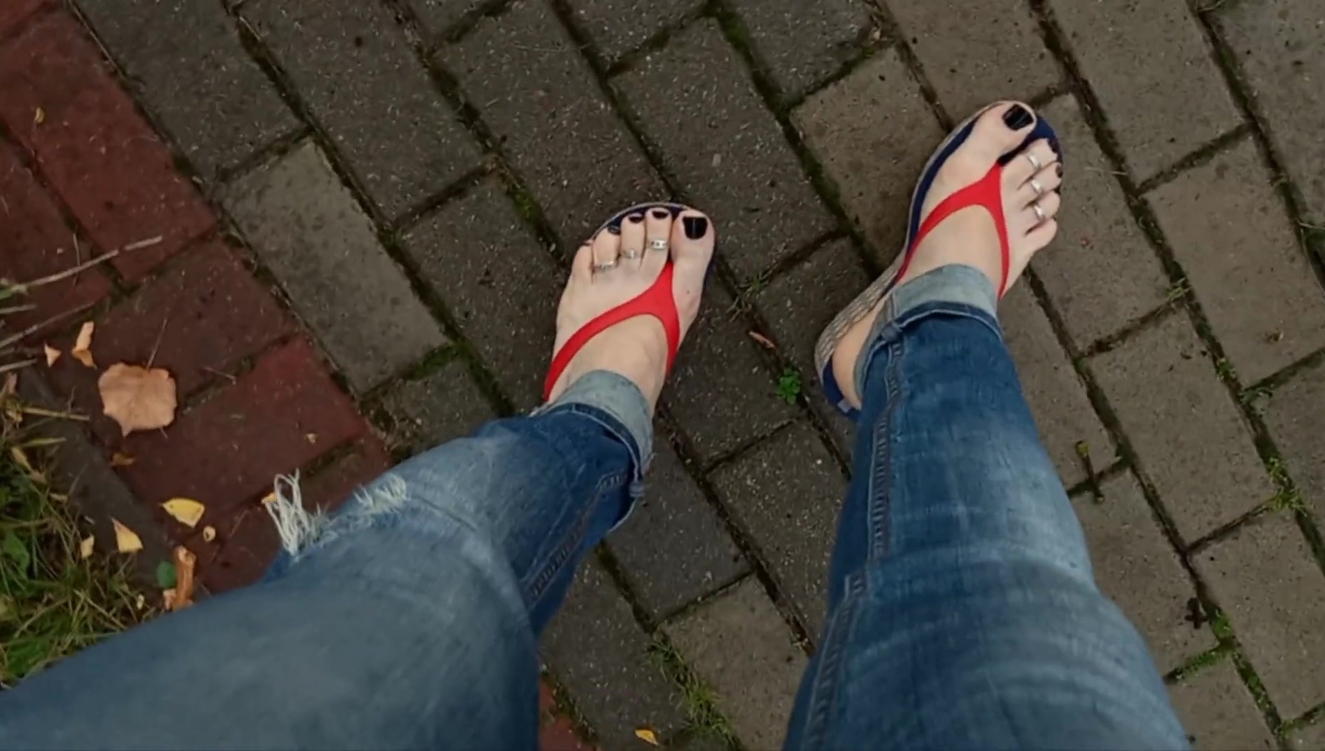 a crossdresser with magnificent soles in spin flops is provocative on the street