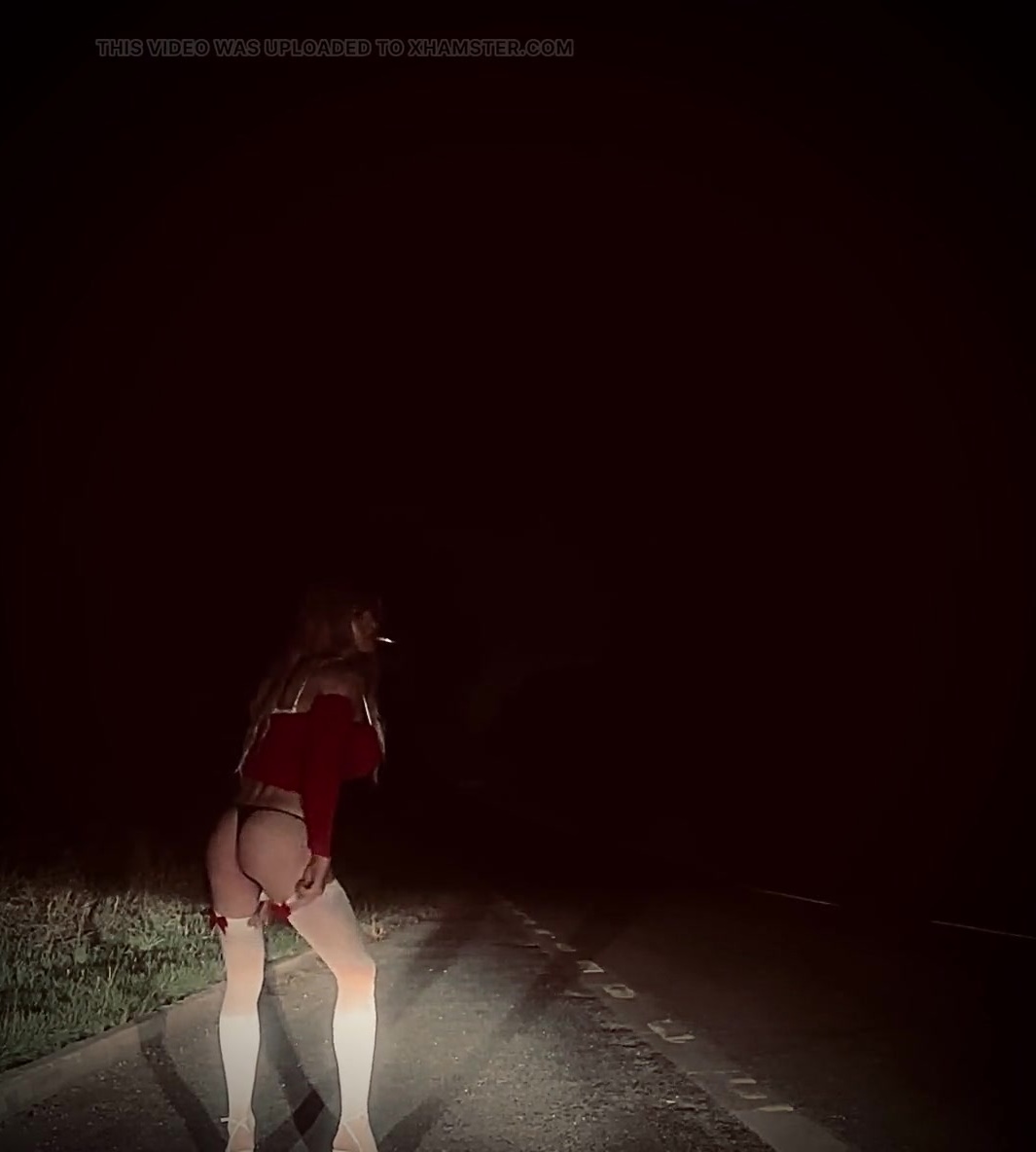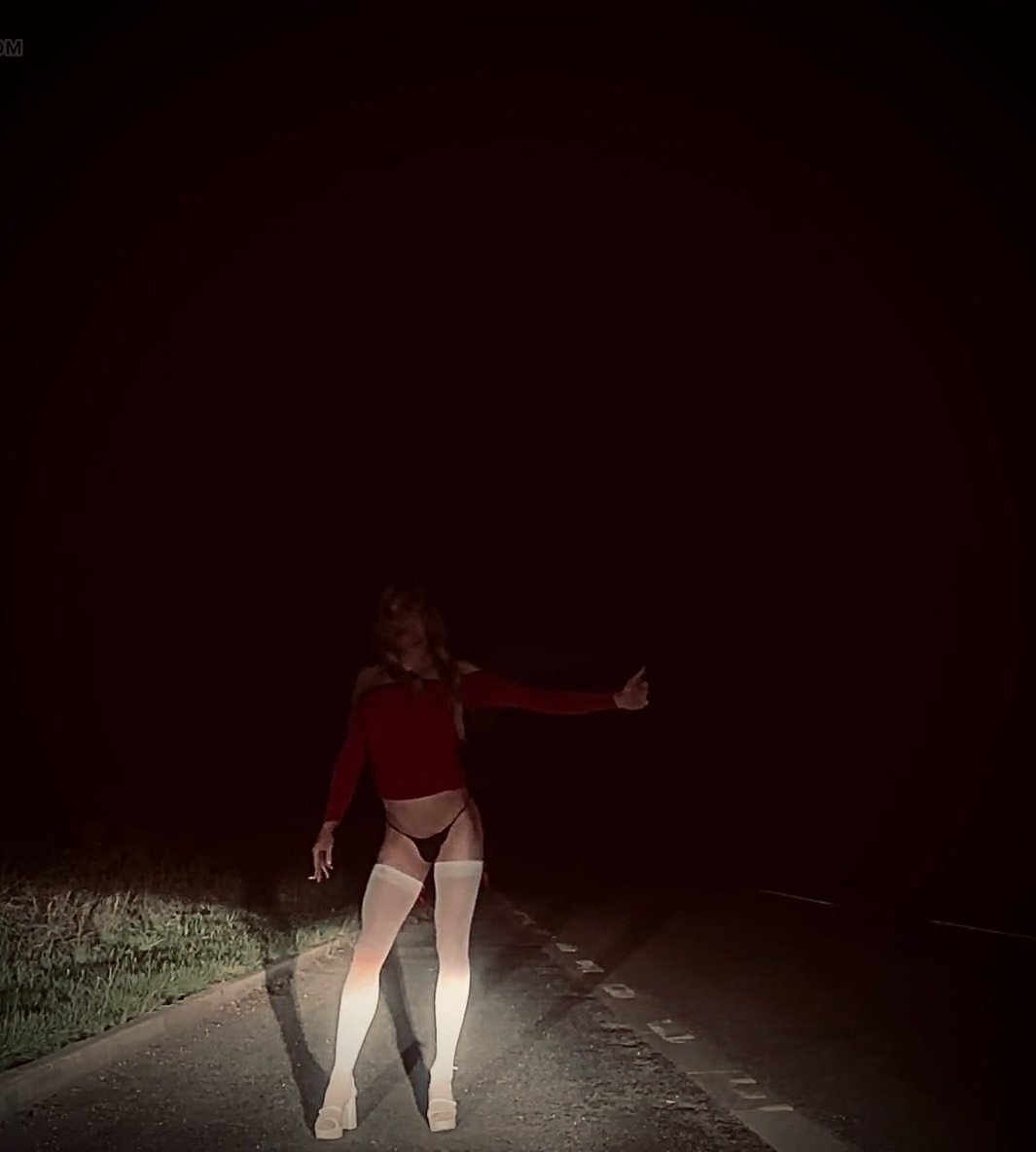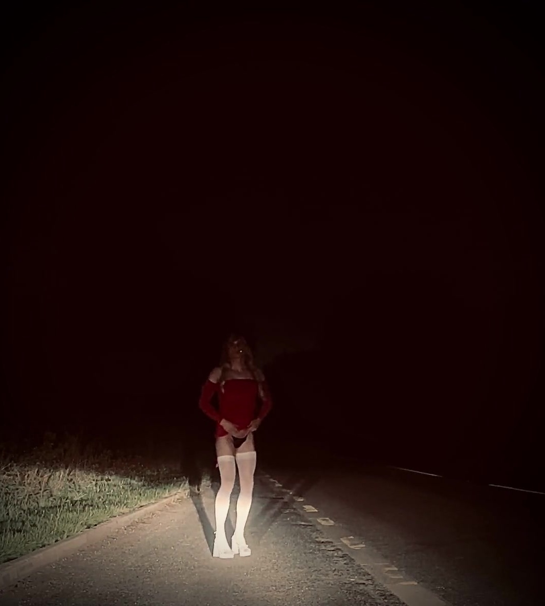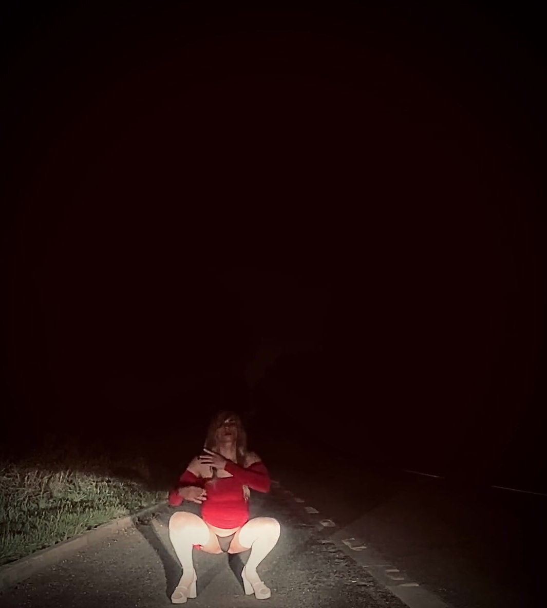 Sissy CD Eva with crimson sundress and tights Fake Penis attempt on drag