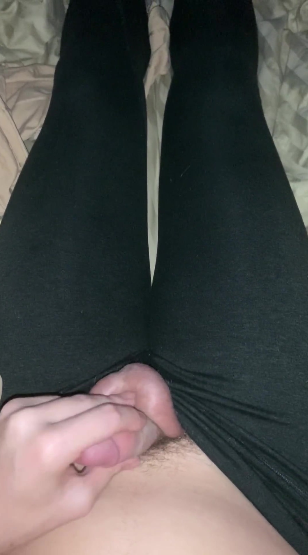 Wanking Dressed In My Nephew's Cock-Squeezing Yoga Trousers