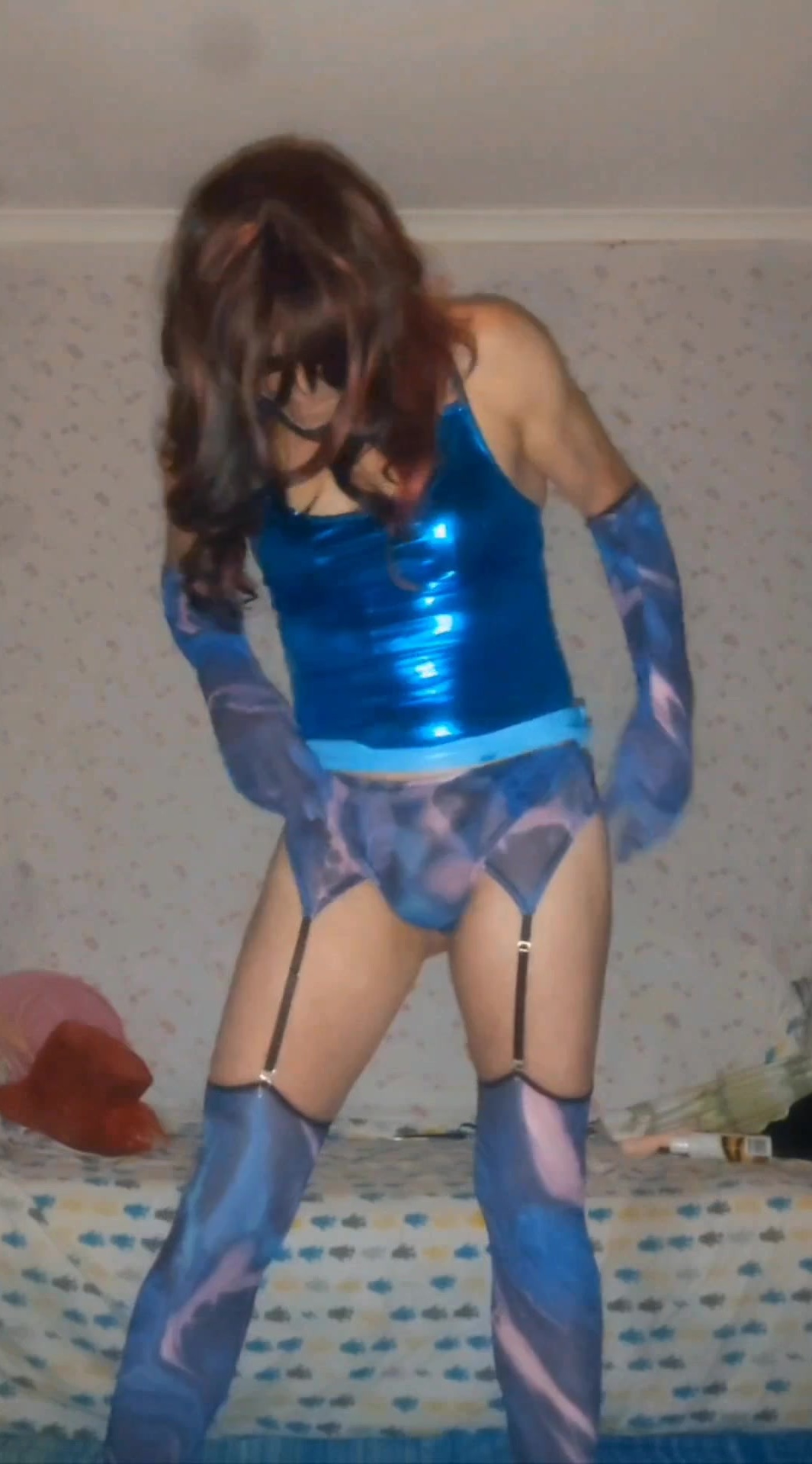 Part II of my blue metallic sundress and suspenders eliminating my pantys to have fun